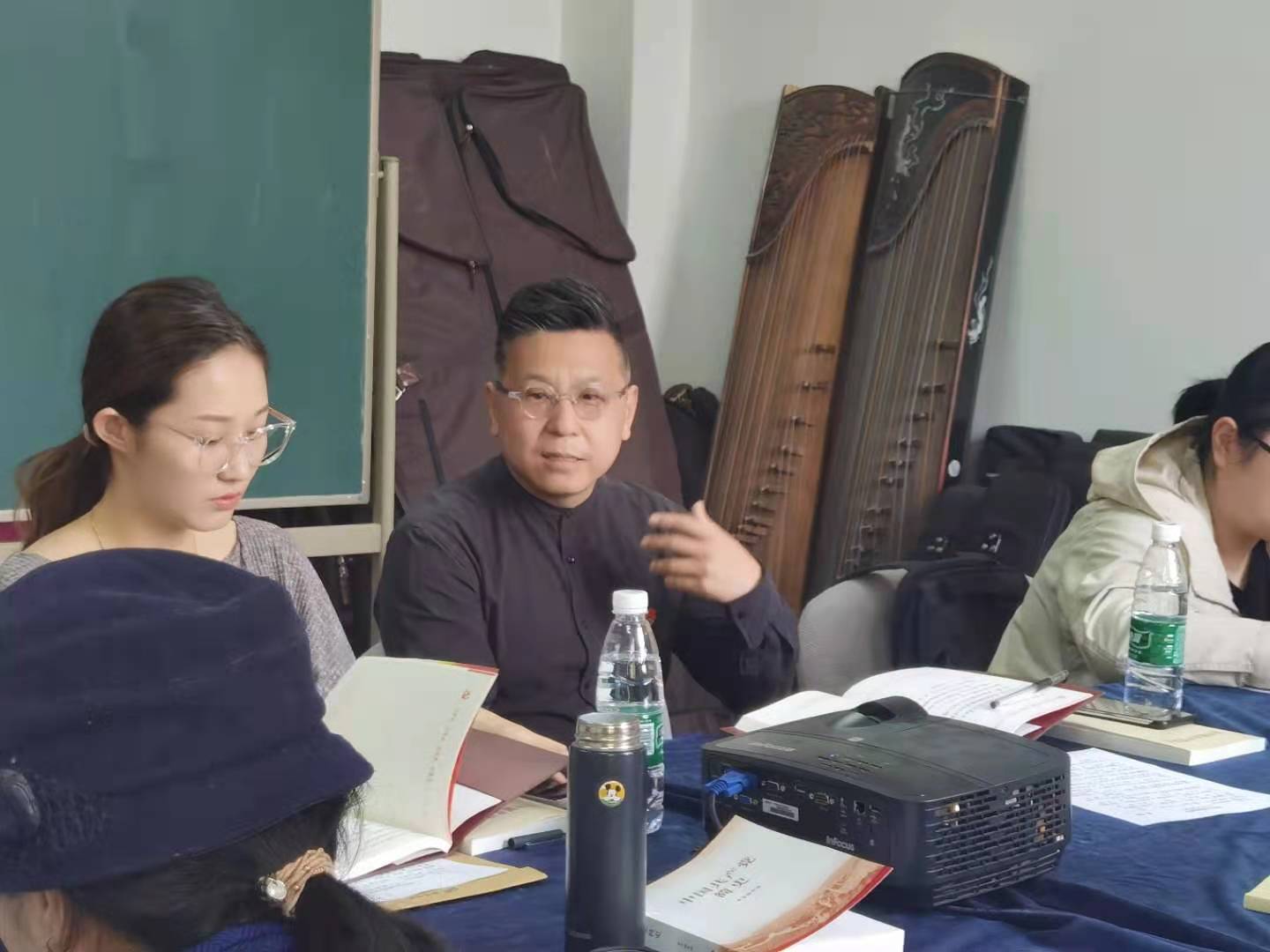 教师党员、学院副院长史大鹏讲解笛子独奏曲《早晨》