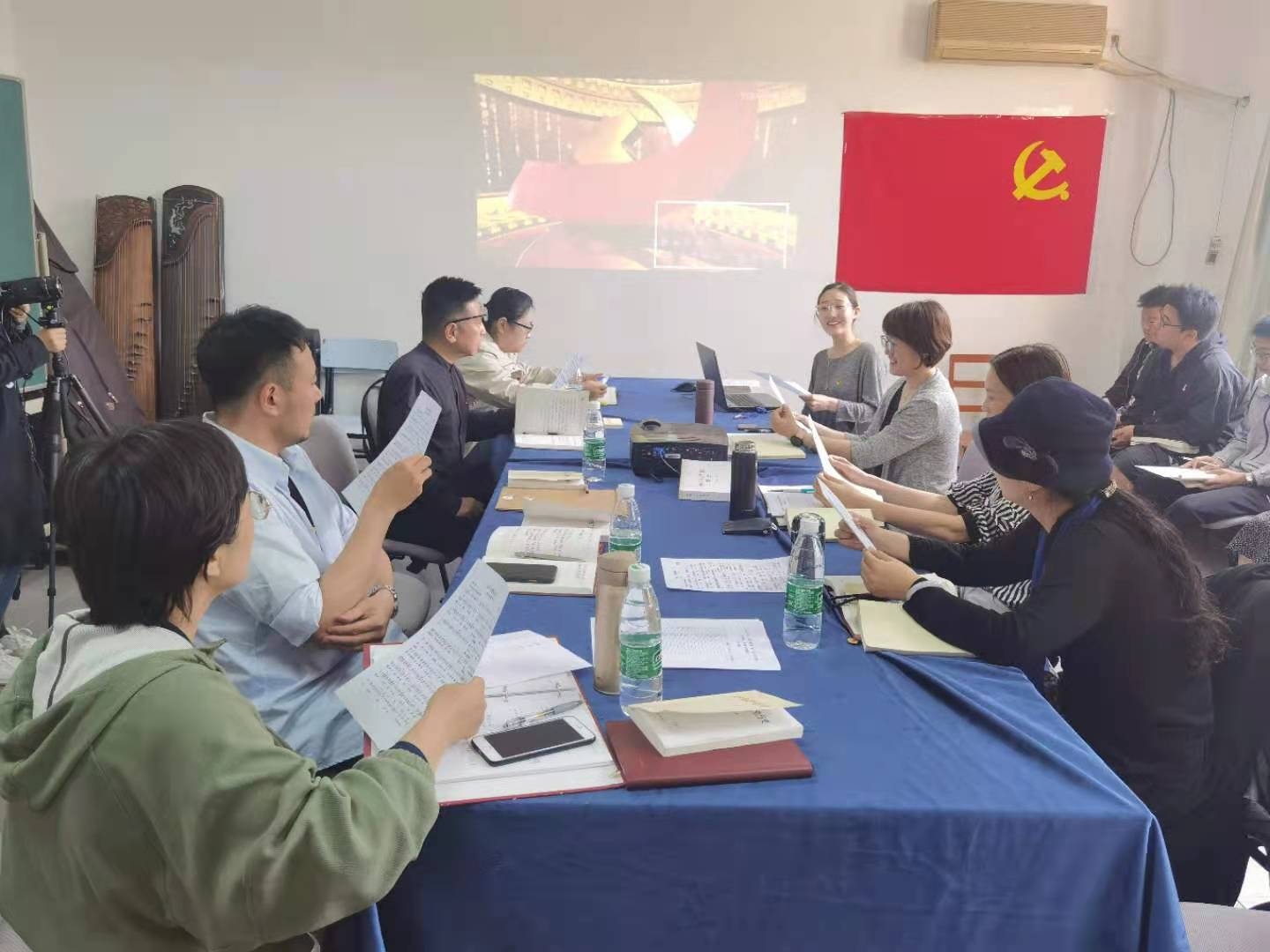 “唱支山歌给党听,我把党来比母亲……”悠扬的旋律响起,教师支部金珂宇老师带领参会的老师和同学们学习演唱《唱支山歌给党听》。在演唱前,金珂宇老师讲述了这首歌曲诞生的背景,重点传达了歌词作者写作时赋予三个段落的不同情感。老师和同学们边听边唱,思想信念在优美深情的歌声里升华。