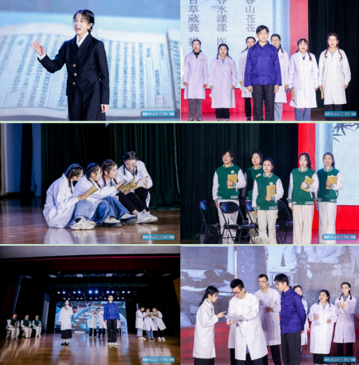 在此次展演中,剧本经过重新打磨,紧密围绕“阅读”这一主题,采用时空交叉叙事,由现代同学对《思考中医》的阅读心得体会开篇,以丰富多样的艺术形式讲述了曹老师团队艰苦改良古方与最终试验成功的奋斗故事,展现了新时代新青年在阅读书籍和阅读榜样过程中领悟到的精神力量。表演内容丰富,演员感情饱满,得到了观众的一致好评。