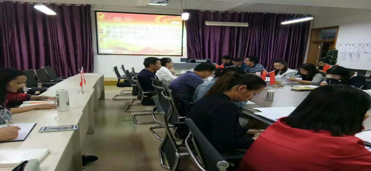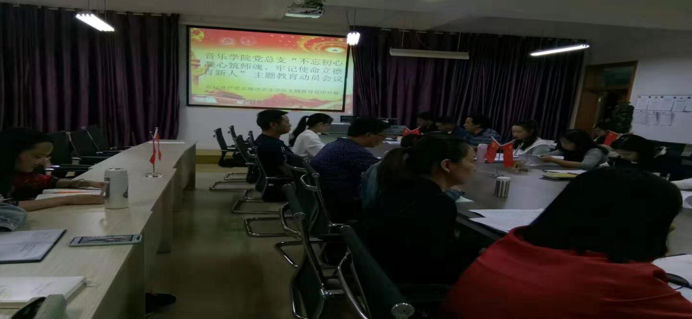 音乐学院学生党支部于2019年9月23日星期一下午,在艺馨楼204党员活动室召开了“不忘初心凝心筑师魂、牢记使命立德育新人”主题教育动员大会,学生党支部赵永琳、姜正芬、熊江兰、赵应芬、段泉龙参加了此次会议,音乐学院院长周梅主持会议。
