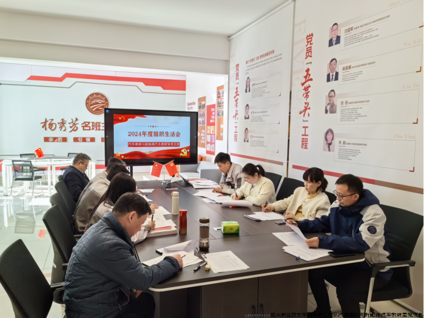 为深入学习贯彻习近平新时代中国特色社会主义思想和党的二十届三中全会精神重大决策部署,巩固深化党纪学习教育成果,为进一步全面深化改革,办好两件大事,忠诚践行习近平总书记对包头作出的“一个创新、三个实现”重要指示,团结带领全体党员干部贯彻落实,以敢闯敢干的劲头、求真务实的措施,落实好学院第四次党代会有关要求,助力包头市打造教育高地,为推进学院高质量发展提供坚强纪律保证。根据学院党委《关于开好内设处级机构领导班子2024年度民主生活会以及党支部组织生活会和做好民主评议党员工作的通知》要求,2024年3月20日下午,汽车维修与新能源教研室党支部召开2024年度组织生活会暨民主评议党员会议。会议由党支部书记杨秀芳同志主持,系部党总支委员沈盛军同志及本支部全体党员参加会议。