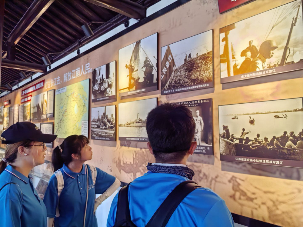 离馆前,实践队在旧址胜利雕塑下庄严宣誓:“以信仰之舟渡时代江河,用青春双桨划复兴征程!”夕阳的余晖为建筑群镀上金边,队员们的笔记本上写满感悟:“支前船工的桨声里,藏着‘人心所向即胜所向’的永恒答案。”这场参观不仅是对历史的追寻,更是一场深刻的精神洗礼,让渡江战役精神在青年一代中焕发出新的时代光芒。
