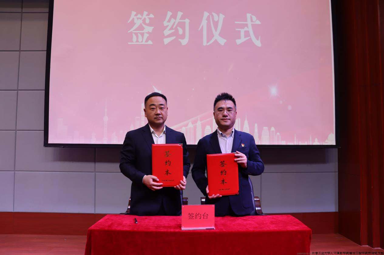 长春市革命烈士陵园管理中心副主任李忠伟与建设工程学院党总支书记徐辉共同签署“爱国主义教育基地”续约协议。