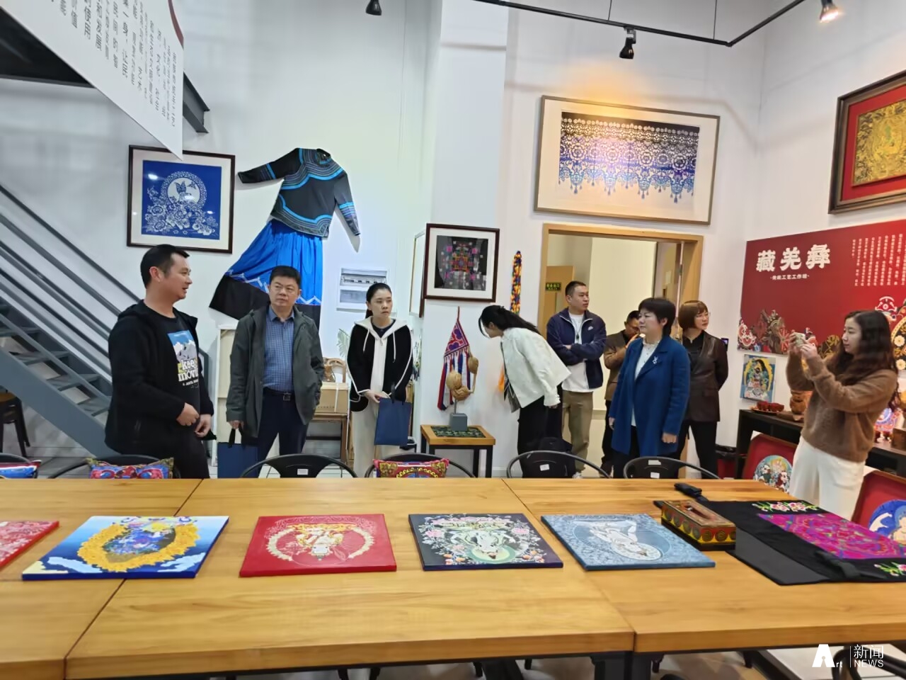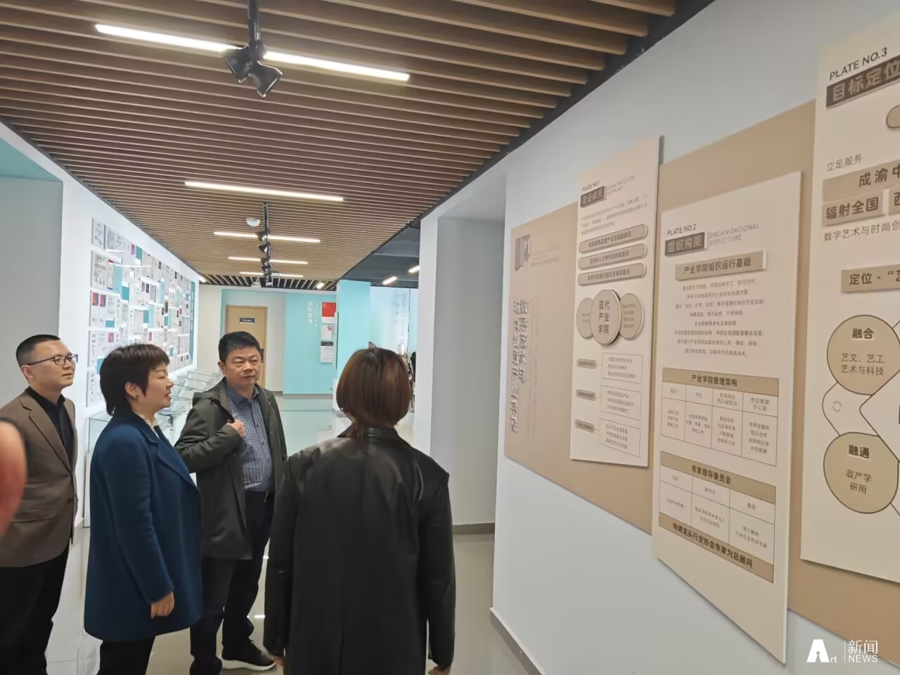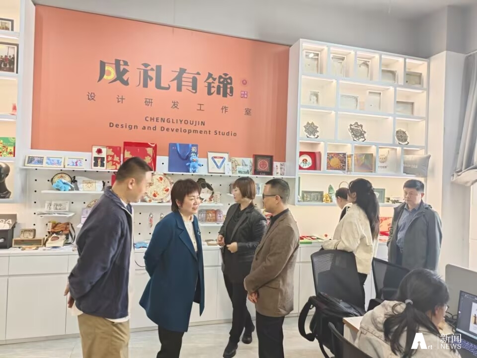 张文军一行首先实地参观了传统工艺研究院、数字艺术与时尚创意产业学院的创新工作室、实验室及成果展示区,对产业学院的研究成果、基础设施等方面进行了全面了解,并对产业学院在蜀锦蜀绣等非遗传承保持方面所开展的大量卓有成效的工作给予了充分肯定。