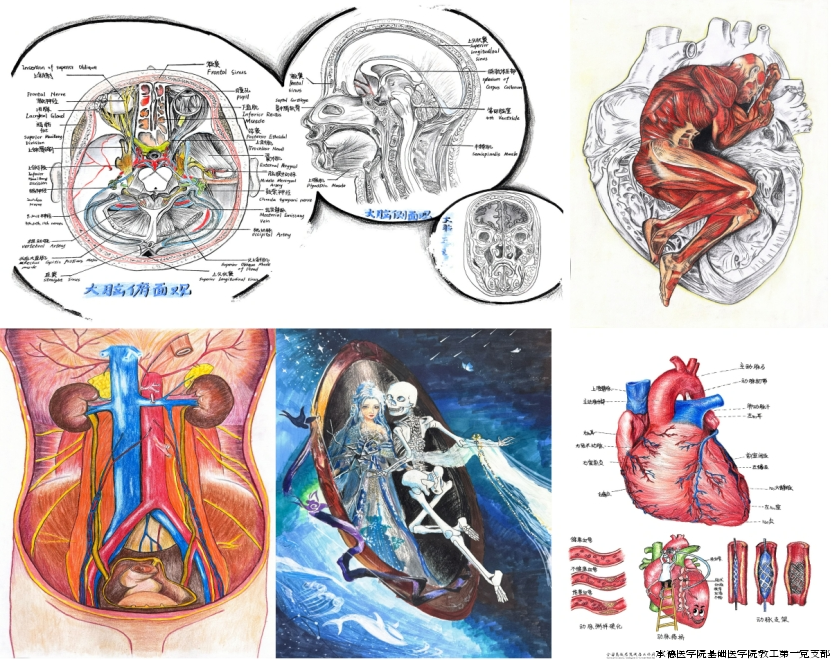 比赛由基础医学院教工第一党支部牵头策划,联合人体解剖学教研室共同举办,面向全体在校学生征集作品。活动旨在通过手绘解剖学图谱,引导学生夯实专业基础、提升科学思维能力,同时以艺术创作形式展现医学之美。活动自启动以来,共收到解剖绘图作品79份,作品涵盖人体运动系统、消化系统、循环系统、神经系统等主题,既有严谨的专业知识梳理,又展现了独特的艺术创意