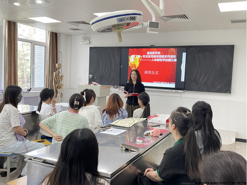 颁奖结束后,基础医学院教工第一党支部书记付秀美表示:“本次活动是‘党建带团建’的创新实践,既检验了师生的专业素养,也通过艺术创作深化了医学人文教育。一幅幅作品不仅是知识的凝练,更体现了医学生对生命奥秘的探索精神。”