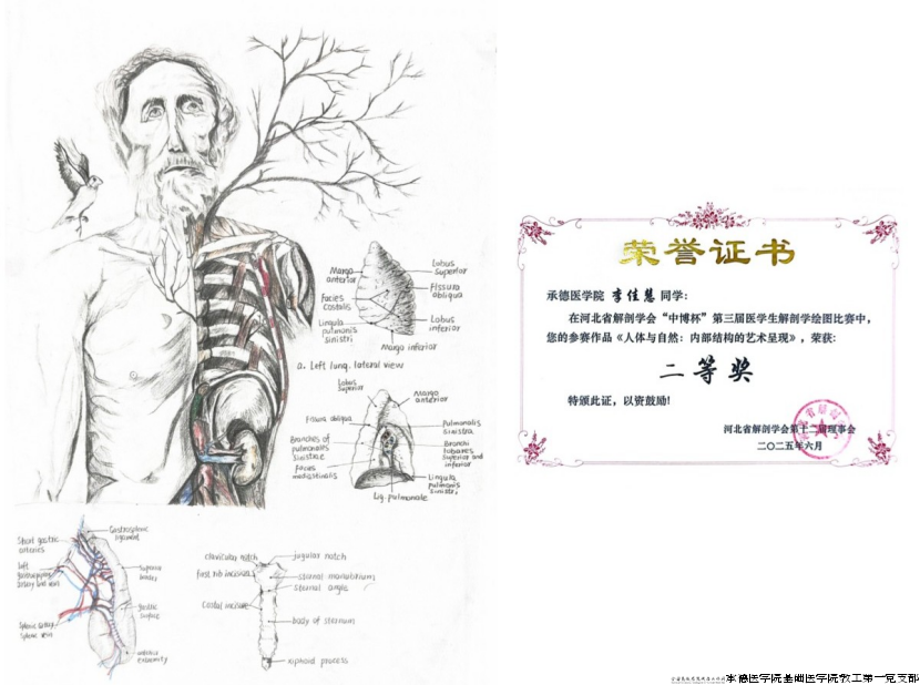 我校学生作品在河北省解剖学会“中博杯”第三届医学生解剖学绘图比赛中获奖