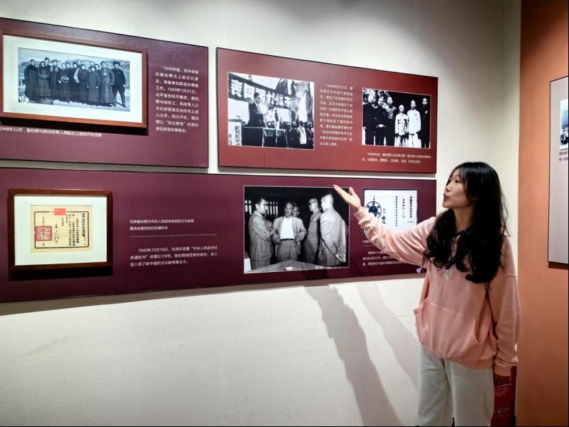 游客们边听讲解边驻足观看,纷纷感叹翦伯赞的非凡人生和矢志不渝的为民精神。刚为一群退伍军人游客做完志愿讲解的红色宣讲团成员王枫婷,感慨地说:“志愿宣讲让我真真切切感受到翦伯赞革命的一生,奋斗的一生,也更加体会到幸福生活来之不易。从课堂上的“倾听者”转变为陈列馆的“讲述者”,更加坚定了我的学习奋斗目标。同时,参加此次宣讲活动,老师的指导帮助我提升了不少宣讲技巧,让我更加从容迎接五一黄金周假期的宣讲活动。”