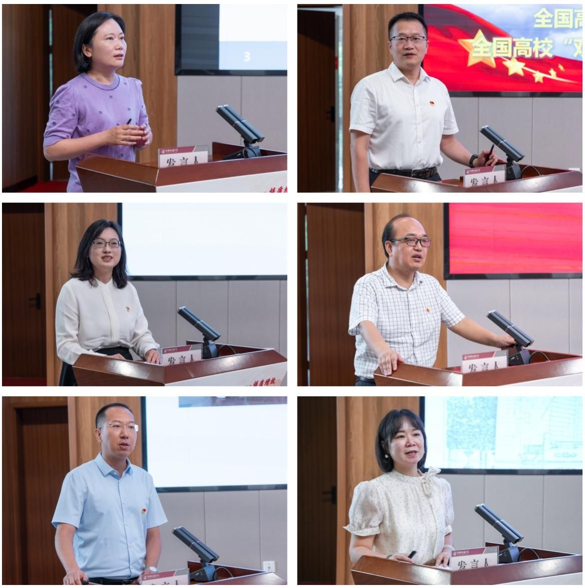 来自校内外6位在党建工作领域具有丰富实践经验的基层党组织书记,结合各自工作实际,围绕党建引领、党建赋能、党建“双创”等分享创新做法和宝贵经验。四川大学华西医院后勤党委书记、党委统战部部长,四川大学华西医院原党委组织部部长姜洁展示了公立医院党建特色品牌建设的创新实践;西南石油大学教学评估处(教师教学发展中心)处长、全国高校“双带头人”教师党支部书记工作室负责人朱红钧分享了“四融三行”“四铸三新”工作法;我校药学院党委书记、全国党建工作标杆院系党组织负责人胡媛书记分享了标杆院系建设经验;我校附属医院内科第一党总支四支部(急诊党支部)书记,急诊科/急诊教研室主任,全国党建工作样板支部负责人卢云探索了中医药院校附属医院党建工作的生动实践;马克思主义学院教工第一党支部书记、全国党建工作样板支部负责人苏森森介绍了教师党支部“一融双高”新思路;针灸推拿学院博士党支部书记,学生科科长,全国高校“百个研究生样板党支部”负责人张译展现了研究生党建工作新生态。