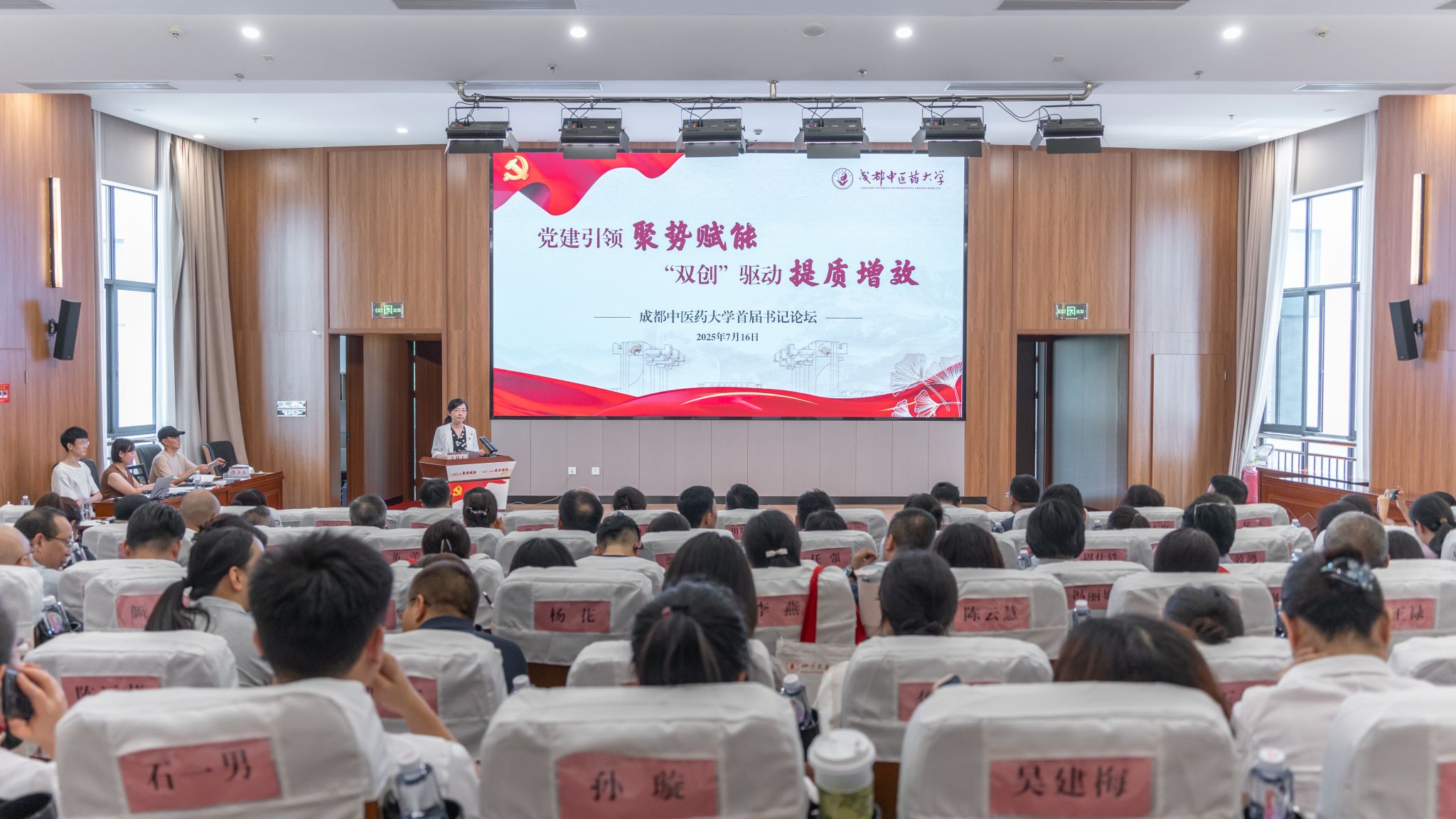 7月16日下午,我校首届书记论坛在温江校区弘景5号楼报告厅举行。论坛主题为“党建引领聚势赋能,‘双创’驱动提质增效”。党委书记张泽钧,党委副书记、纪委书记,驻校纪检监察组组长郑学斌出席论坛。论坛由党委常委、组织部/统战部部长赵凌主持。