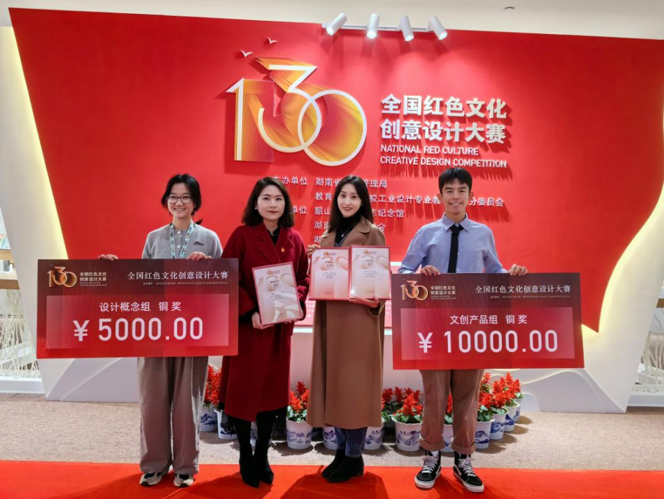 今年7月,湖南省韶山管理局联合教育部高等学校工业设计专业教学指导分委员会举办“全国红色文化创意设计大赛”,大赛设“文创产品组”“设计概念组”两个组别,面向全国征集“强国”“韶山”“缅怀”“奋斗”四个方向的文创作品。大赛自启动以来,吸引全国42家企业、105所高校参与,辐射22个省市区,共收到119套370件文创产品作品和342个设计概念作品。长沙商贸旅游职院艺术设计专业学生刘听翼、郑禄杰、贺春丽获铜奖和优秀奖。