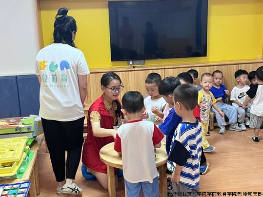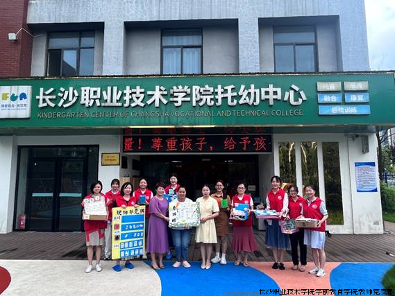8月2日上午,长沙职业技术学院学前教育学院教师党支部(“一滴水”志愿服务队)及部分学生党员赴长沙市放芯育托幼中心,开展“送教入园”志愿服务活动。学前教育学院党总支书记唐艳、学前教育学院院长李吉珊、放芯育托幼中心负责人及老师等参加本次活动。