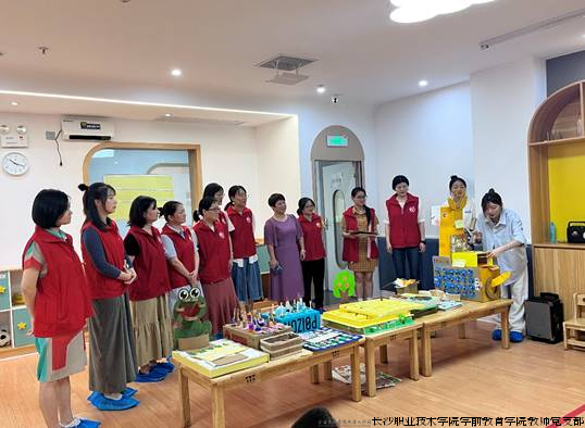 放芯育托幼中心负责人对学前教育学院教师党支部的到来表示热烈欢迎,对赠送的玩教具给予了高度评价及感谢。她表示,长沙职业技术学院与放芯育托幼中心的合作源远流长,未来还有更加广阔的合作空间。希望园校加强联动,多开展“送教入园”志愿服务活动,本次活动深受幼儿喜欢、家长认可、让我们一起携手共筑学前教育美好未来。学前教育学院党总支书记唐艳表示,感谢托幼中心对本次活动的支持与肯定,活动为师生专业成长搭建了互动平台,相互促进,共同成长,推动了校企进一步合作。