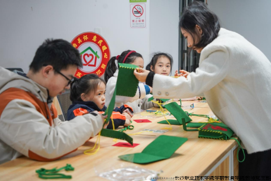 1月16日,长职学前教师支部“一滴水”志愿服务者教师走进岳麓区观沙岭街道观裕社区,为近20名学龄期儿童带来了一堂别开生面的“制作雷锋包”美术公益课。