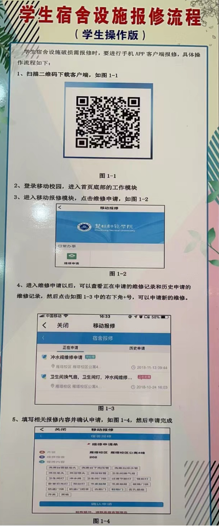 二是完善智慧报修模块。我校学生社区有专门的报修系统,学生可通过下载 APP进行相关操作,每当学生发现宿舍设施损坏都可以打开报修软件报修,上面可以选择楼幢、宿舍号、损坏物品种类,几乎涵盖了学生宿舍的所有维修需求,在学生报修之后,系统会通过后台分配维修人员在1-3个工作日内及时维修。另外,在维修过程中所需的耗材都会有详细的后台记录,方便材料的整理与后续的查验。通过此种方式,学生可以足不出户解决维修问题,在此基础之上,系统还建立了维修反馈制度,收集学生意见,对存在的问题及时整改,以便给学生提供更好的服务。