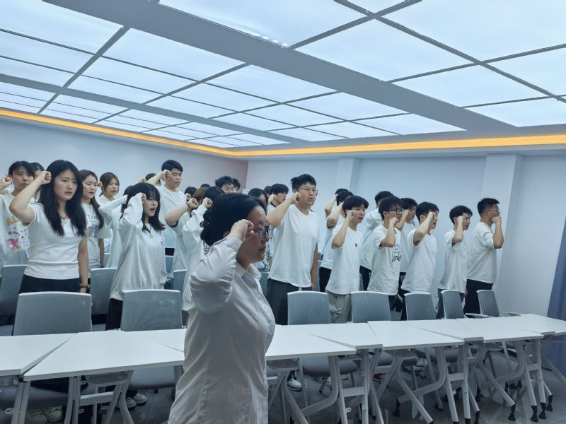 学院推出“五四猜猜猜”创意活动,将历史事件和红色歌曲转化为趣味十足的竞赛活动。活动现场氛围热烈,同学们或皱眉思索,在符号与史实间反复推敲线索;或灵光乍现,瞬间精准说出答案。团员青年在知识的竞答中加深了对党史、团史的了解,进一步增强了团队协作能力和竞争意识,也让红色文化在轻松愉快的氛围中深入人心。同时,团员青年重温入团誓言,以庄严的仪式感表达对共青团的热爱。