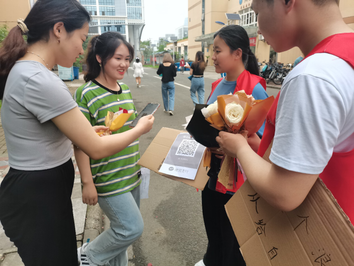 5月20日,信息安全2031团支部走进常州大学城夜市和机电校园以“学史力行、将爱传递”为主题开展爱心义卖特色团日活动。此次义卖是由信息安全2031班团支书杨慧发起,团支部23名共青团员筹集原始资金300元,经过3次义卖,共卖出鲜花130枝,收获爱心款1350元,为小留新市民小学四(2)班49名小朋友采购魔方、发卡、圆珠笔、笔记本等小礼物50余件。团支书杨慧表示,爱心义卖活动用独特的形式让全体团员在实践活动中获得成长,用自己的实际行动为小朋友们献出了一份爱,是一件极有意义的事情。
