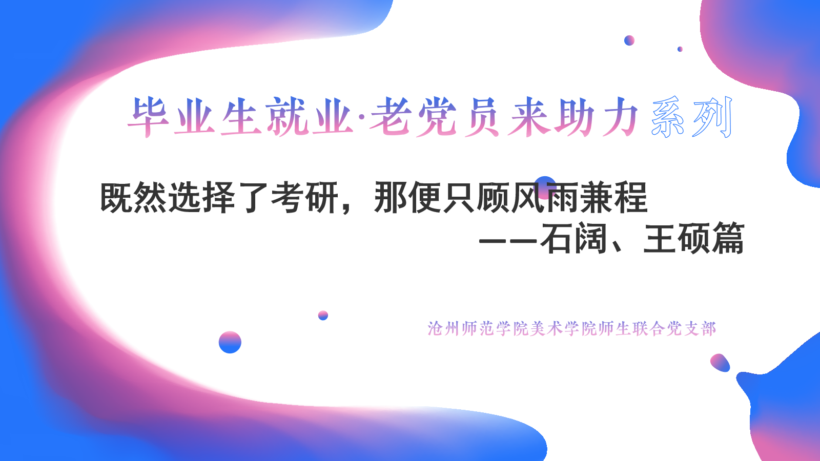 采访中石阔留给了准备考研的师弟师妹一段“走心”的考研寄语:“认清考研目的,坚定理想信念。自己为什么考研,是为了纯粹的喜欢做学术,把握这个提升学历的机会,还是为了转换城市、学校、专业,或者为了缓解就业压力,想读研后有更多的选择空间,既然选择了考研,便只顾风雨兼程!”