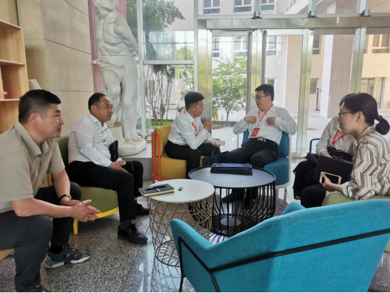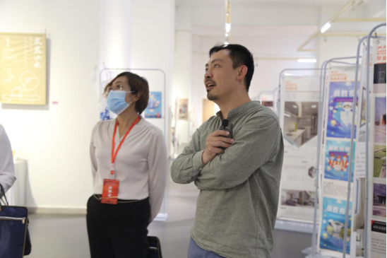 6月3日下午,在结束了第二届第二次教职工暨工会会员代表大会一天的议程后,沧州师范学院党委常委副校长彭学君,组织部部长李健,教务处处长吕炳君,人事处处长付媛媛,全校19个二级学院院长和全体工会会员代表来到我校蓝馆美育基地——洪昌美术馆,共同参观“庆祝建党100周年·设计之夏——沧州师范学院美术学院2021届艺术设计类毕业作品展”,感受设计的魅力。在参观的过程中,院长和代表们被学生们的设计思路、设计样式和设计表达所吸引,不断点赞毕业生的创作作品,也对于我院艺术设计教学工作表示肯定。
