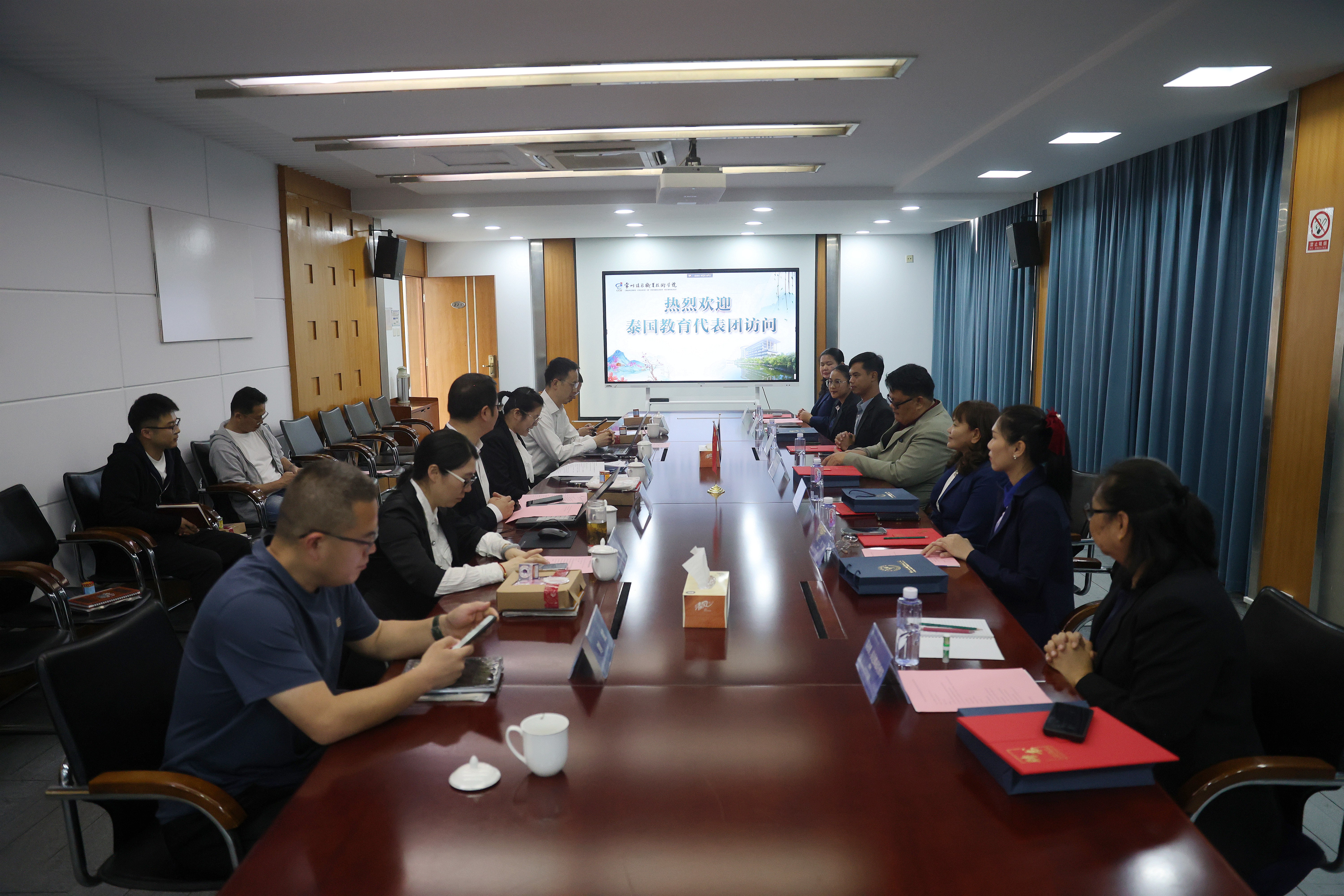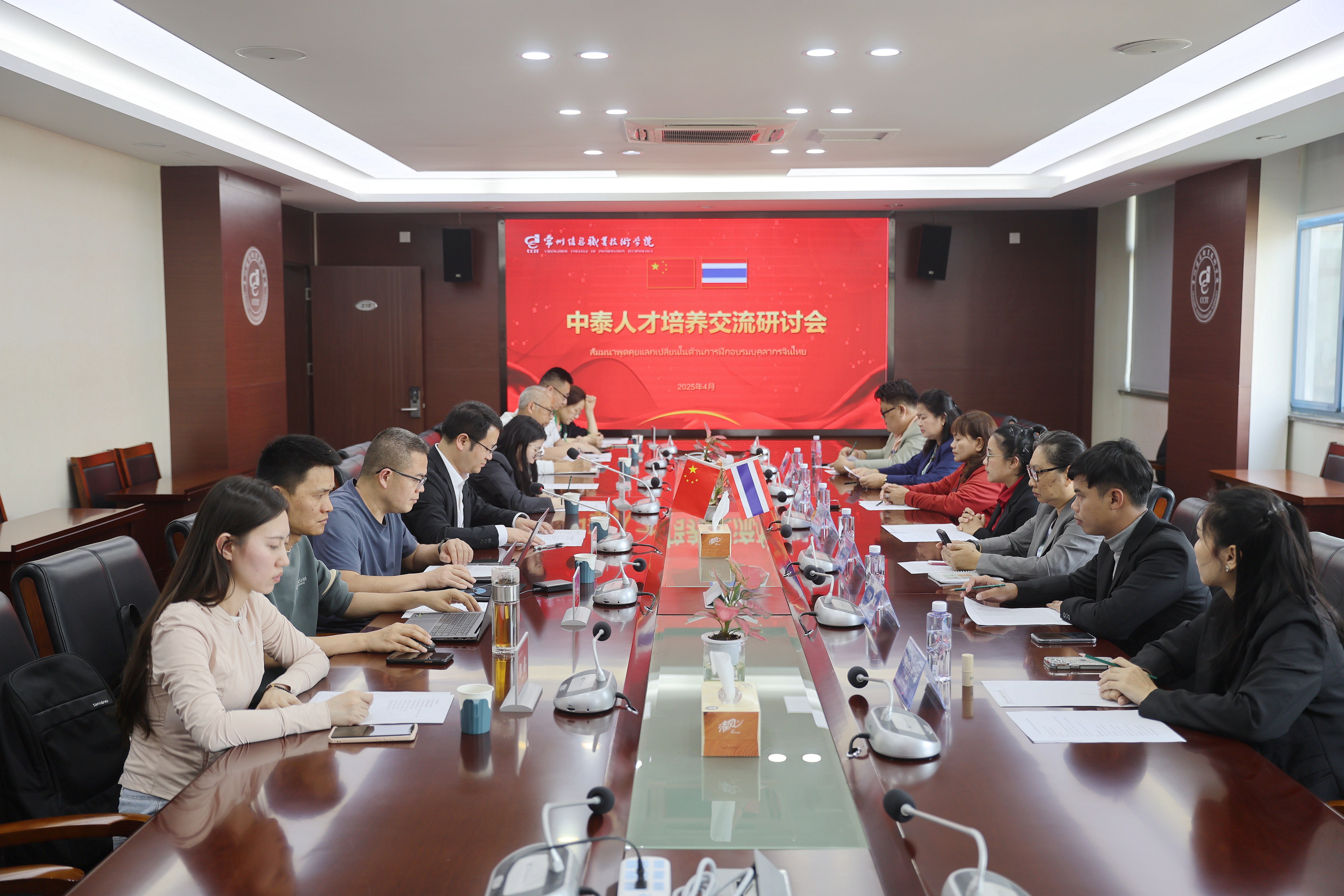 在项目会谈上,王鸿凯对泰国教育代表团一行表示了热烈的欢迎,并希望我校能够和泰方院校一起积极探索适应新时代需求的人才培养模式,推动高质量高等职业教育交流。泰方教师代表霜苏达•尚迪表示常州信息职业技术学院给泰国学生提供了宝贵的学习机会,她希望中泰两国院校之间的合作能够持续长久。