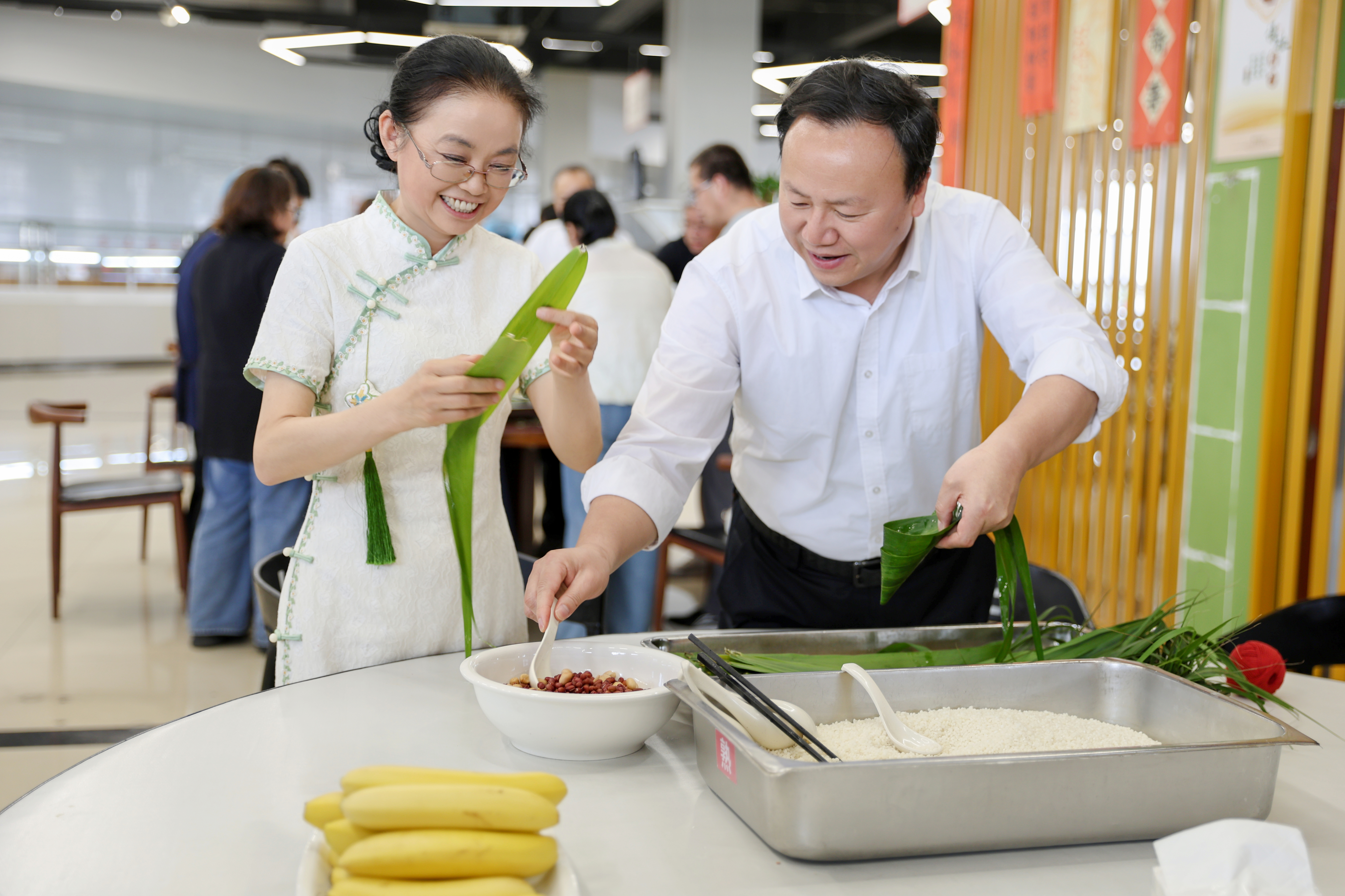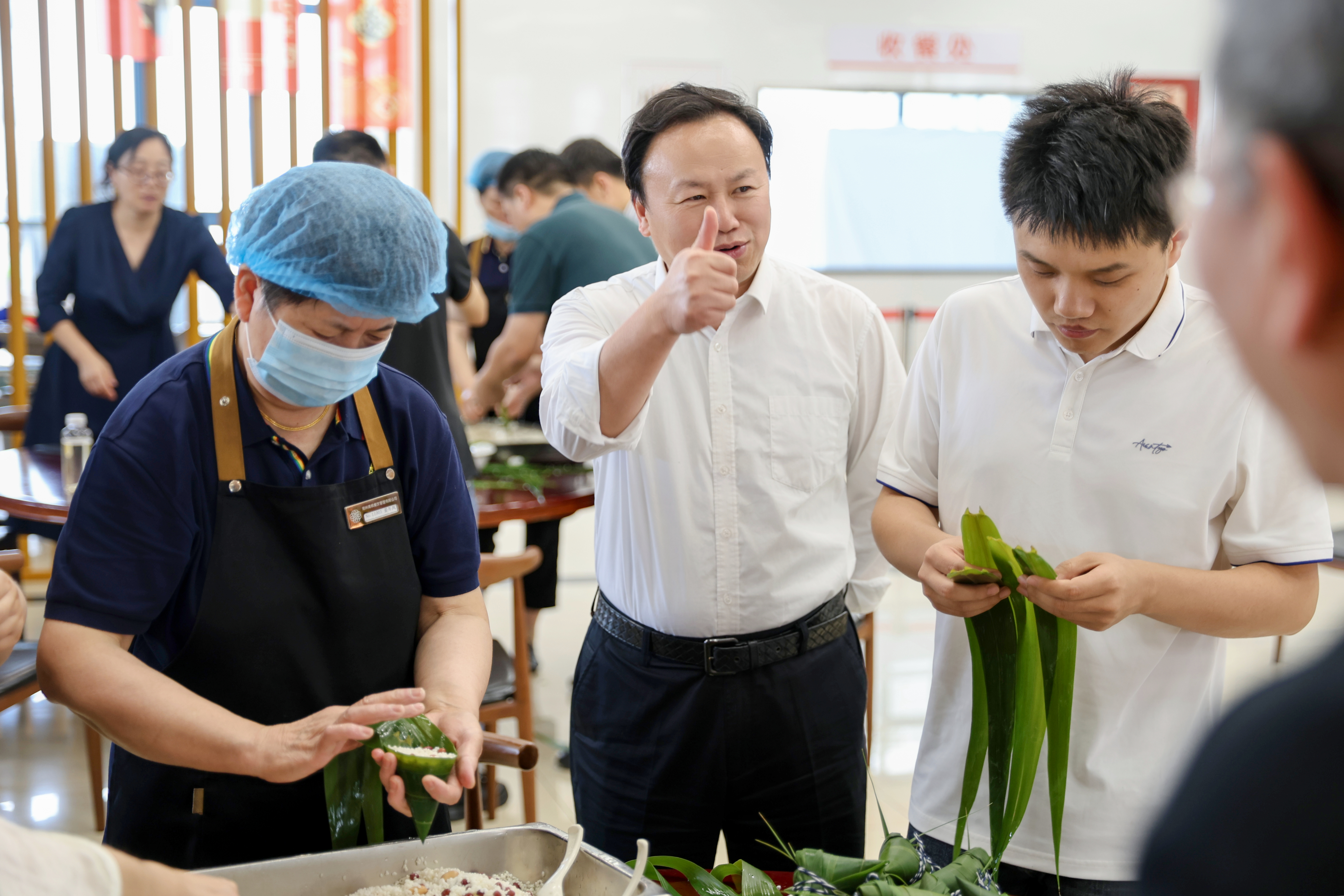 校党委书记成建华,党委副书记、校长徐建俊,党委副书记费云生也莅临活动现场,与师生一起包粽子,品端午韵味,话家国情怀。