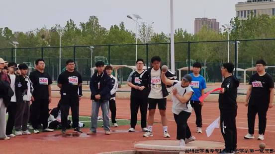 铅球场地,选手们手持铅球,目光专注地注视着前方。他们深吸一口气,积蓄着全身的力量,然后猛地发力,将铅球奋力掷出。铅球在空中划过一道优美的抛物线,带着选手们的希望和力量,飞向远方。铅球项目里,医大临床24-2班李旭宽用自己的实力诠释了力量与技巧的完美融合,最终以1厘米的微弱劣势屈居亚军。