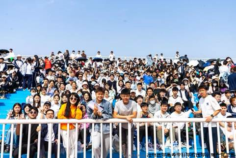 看台上,医学系的加油方阵同样是一道温暖的风景线。每当医学系选手踏上赛道,震耳欲聋的口号声便排山倒海般地响起。从短跑选手起跑的瞬间到长跑运动员冲刺的最后一刻,看台上的加油声始终保持着整齐的节奏。运动会的赛场上,医学系师生用热情点燃了每一寸土地,用呐喊凝聚起坚不可摧的团队力量。这一声声饱含期待与鼓励的加油,不仅是对运动员的支持,更是医学人团结协作、永不言弃精神的生动写照——当热血与激情相遇,当专业与热爱碰撞,青春的光芒在这片赛场上熠熠生辉。