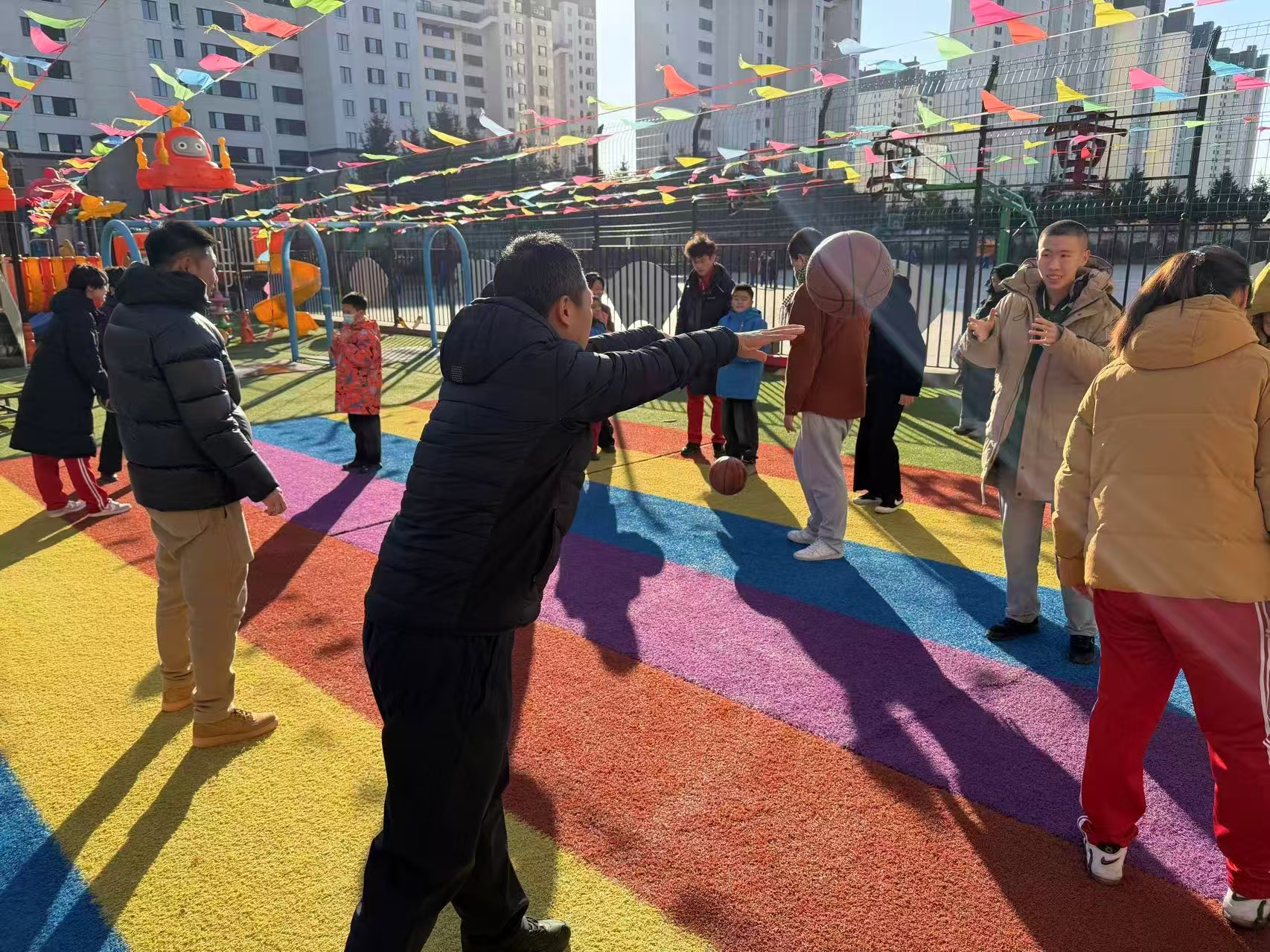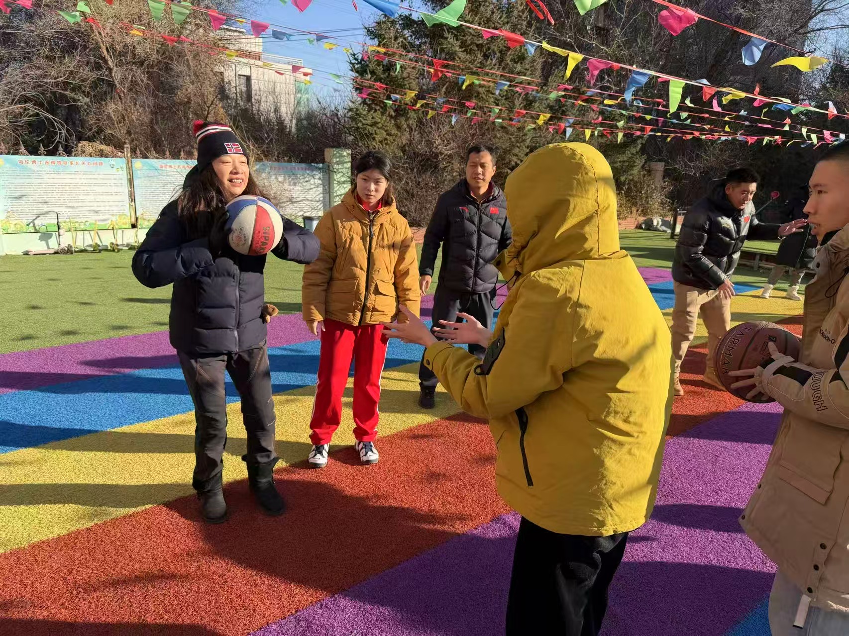 分批次“一对一”教学,笑声与传球交织的温暖操场
