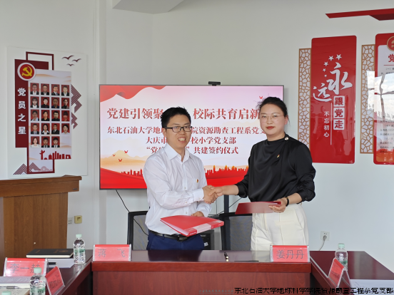 为进一步推进两校的交流与合作,5月23日,地球科学学院资源勘查工程系党支部与大庆市祥阁学校小学党支部,举行“党建引领聚合力 校际共育启新程”党支部联建共建签约活动。