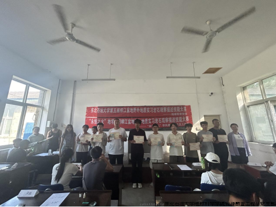 地球科学学院实习指导教师蒋飞、范广娟、马静辉、王浩然、代天娇等担任大赛评委,从观察准确性、描述完整性、分析深度等方面综合评分。最终评出特等奖1组,一等奖2组,二等奖3组、三等奖4组及优秀奖若干组,资勘本硕24-1班获特等奖,油工24-5班和地信24-1班获一等奖。