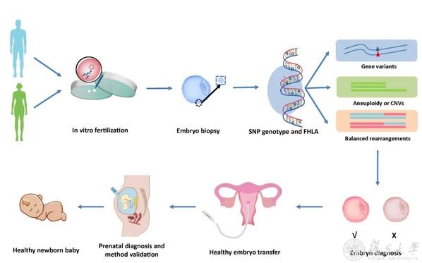 在2017年时,该研究团队的张硕博士便研发了基于遗传标记的胚胎植入前全基因组单体型连锁分析(Preimplantation genetic haplotyping,PGH)技术,该技术能够精准地在胚胎期诊断出“染色体结构异常核型携带”和“染色体正常核型”的胚胎,并于2019年获得国家发明专利授权,为国际上该领域首个发明专利。基于PGH技术这一基础,团队继续进行进一步的深入探索,致力于打造一个更加高效、适用于临床的一体化的综合性和通用性PGT技术,通过一次检测对胚胎中多个遗传变异进行综合性的精准筛查,且对不同的单基因病和染色体病患者具有通用性,尤其适用于同时患有两种甚至多种遗传病的患者。
