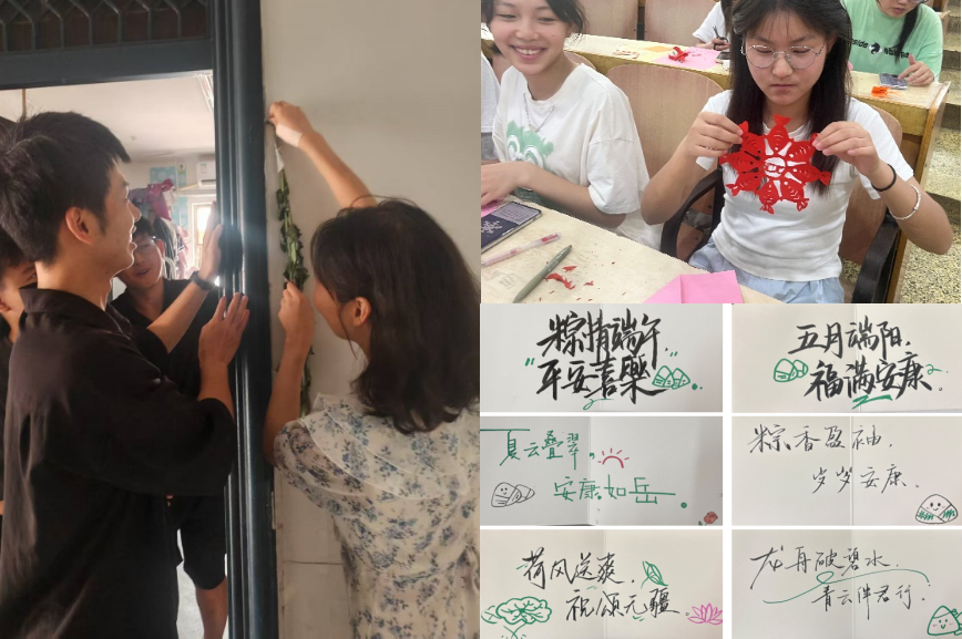 土木与交通学院精心策划并开展了以“艾香纸韵·手书心意”为主题的系列文化实践活动,活动紧密围绕学生成长需求与文化体验,开展“挂艾草”“巧手剪纸”“手写祝福”等活动,引导学生传承“艾招百福”的民俗智慧,感受端午的剪纸艺术意象,在节日期间用笔墨传递同窗情、师生谊与家国愿,营造了温馨浓郁、意蕴深长的节日氛围,参与学生普遍反映,活动让书本上的“传统节日”变得可触、可感、可亲,增强了对中华优秀传统文化的认同感与自豪感。