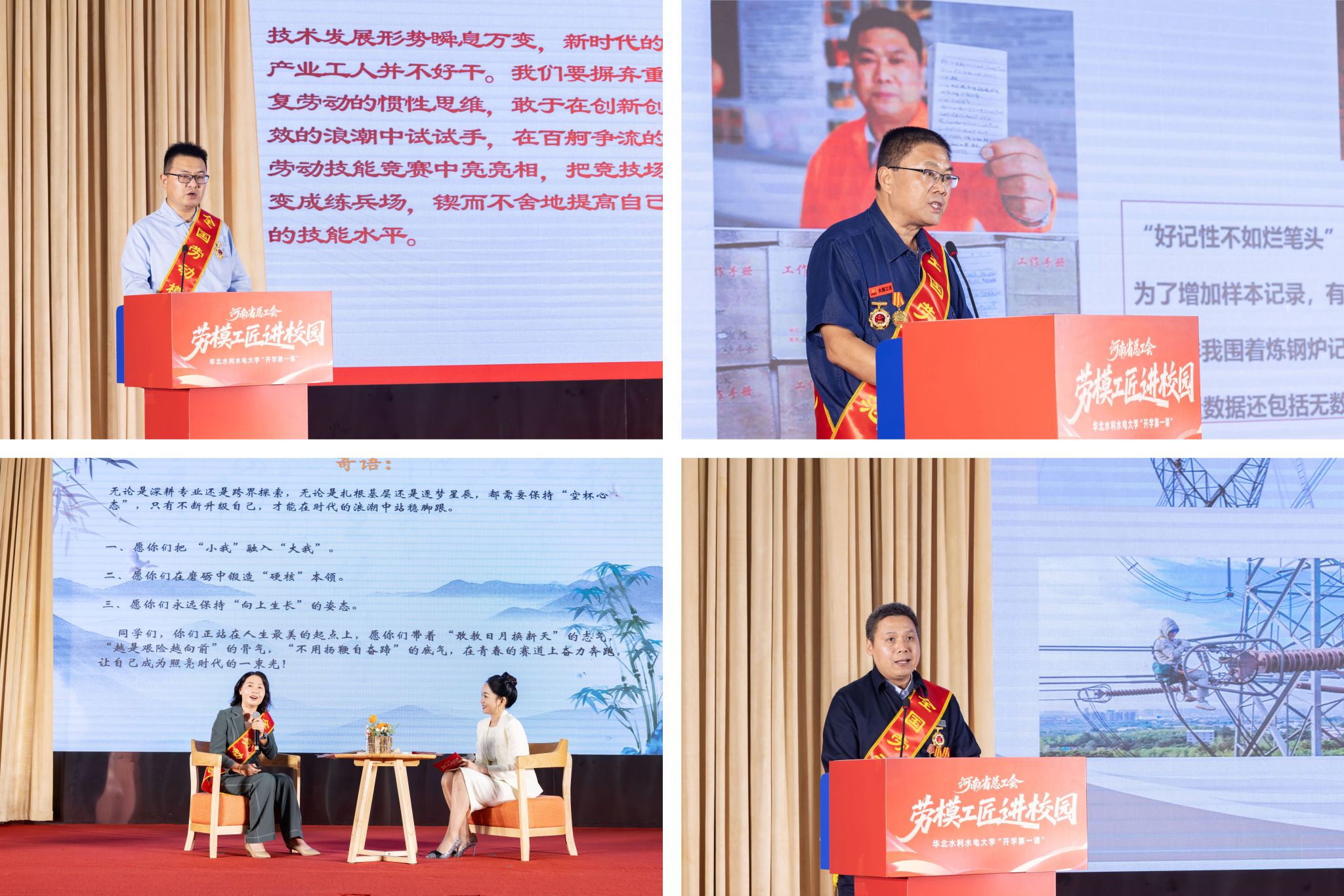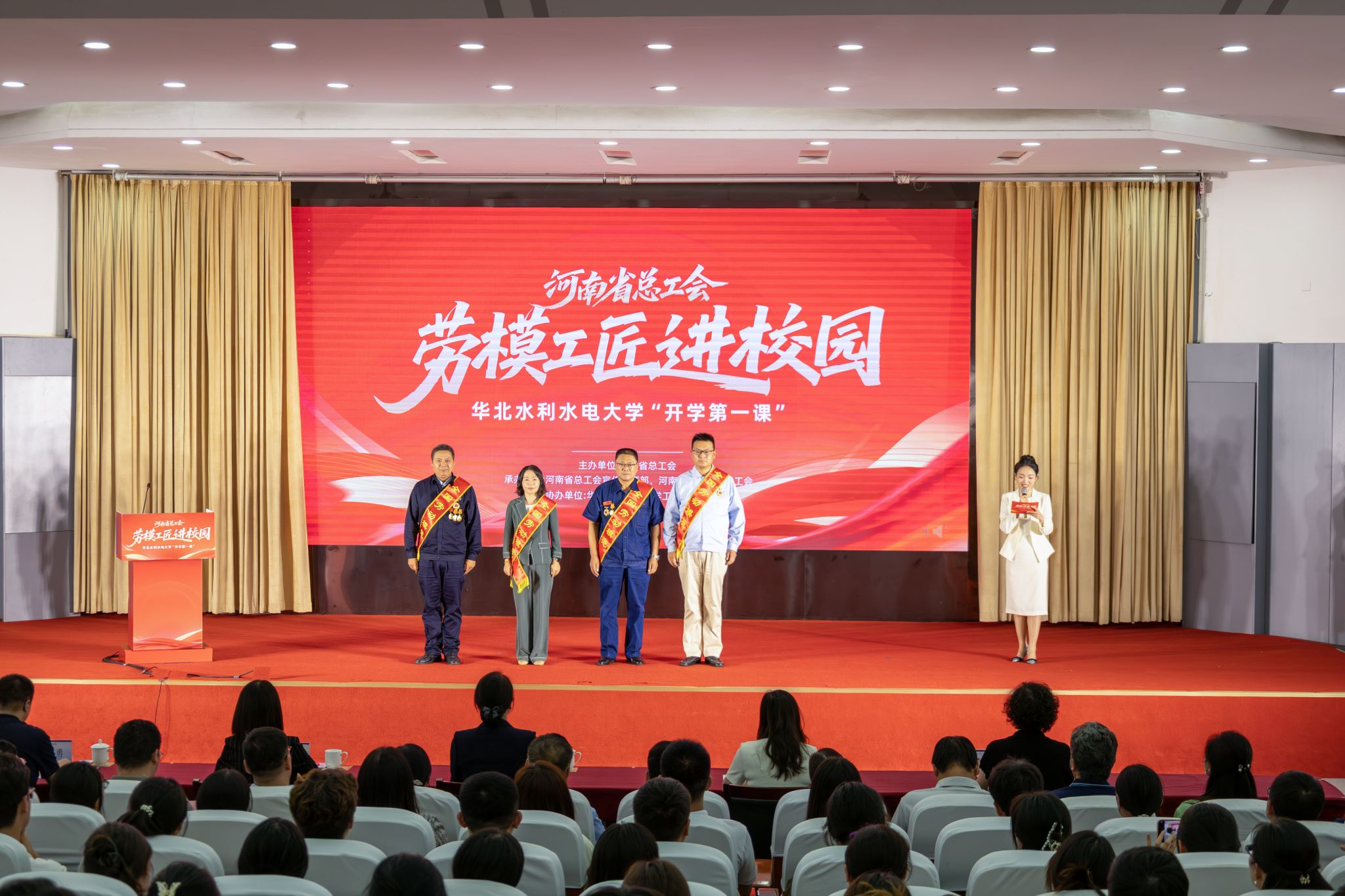 9月1日,由河南省总工会主办、省总宣教部与省教科文卫体工会联合承办的“劳模工匠进校园”活动在华北水利水电大学举行。四位全国劳动模范以亲身奋斗历程为教材,为我校320名师生代表及超百万在线观众呈现了一堂深刻诠释“劳动光荣、技能宝贵、创造伟大”的“开学第一课”。省总工会副主席、党组成员高颖嘉,校党委副书记焦爱萍等领导出席活动并讲话。