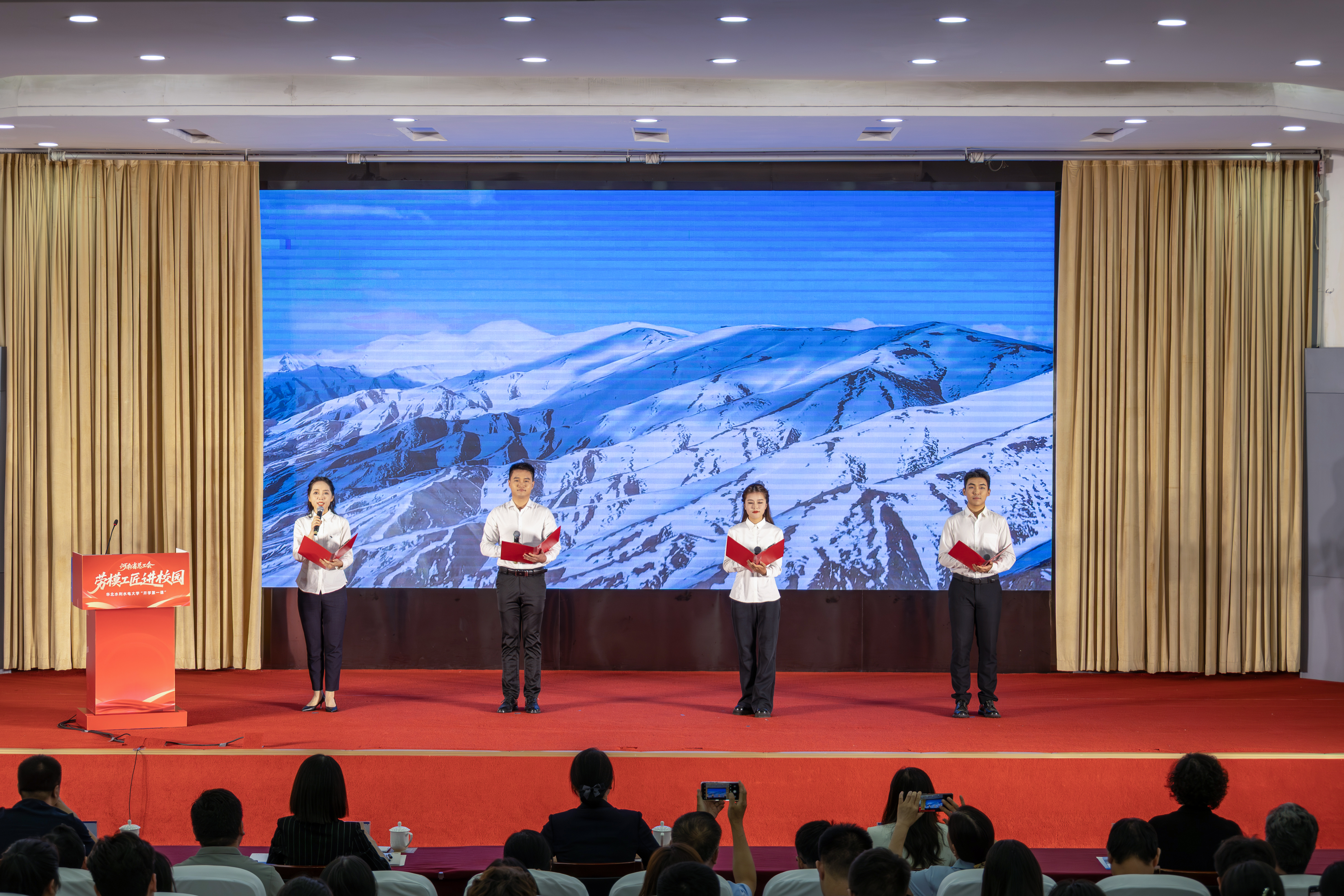 活动中,师生代表以诗朗诵《大国工匠》致敬劳模精神。学生代表在接受采访时表示:“劳模们的故事让我们明白,奋斗是青春最亮丽的底色。未来我们将以‘水润民生’为己任,让青春在实干中闪光。”