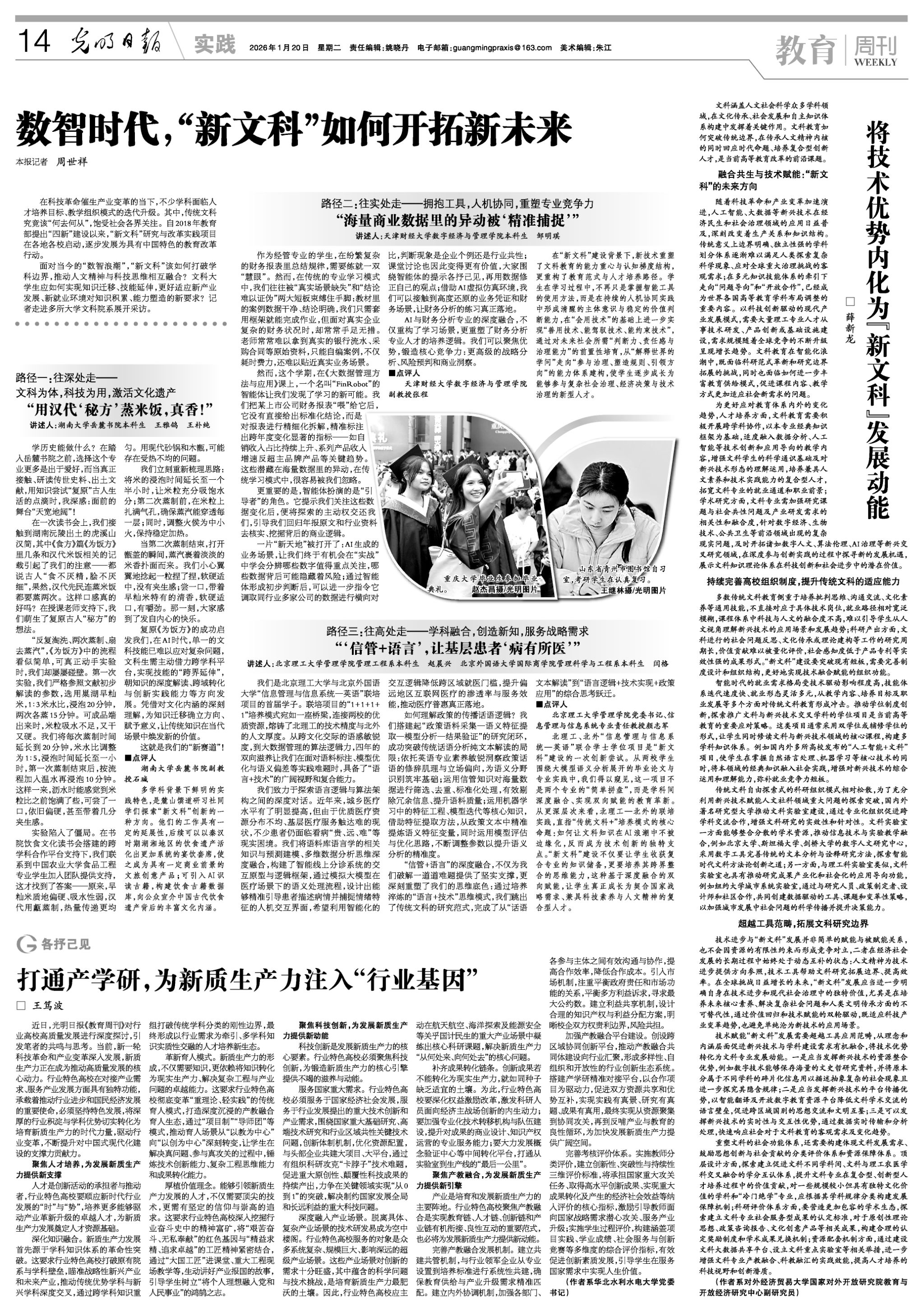 近日,光明日报《教育周刊》对行业高校高质量发展进行深度探讨,引发笔者的共鸣与思考。当前,新一轮科技革命和产业变革深入发展,新质生产力正在成为推动高质量发展的核心动力。行业特色高校在对接产业需求、服务产业发展方面具有独特功能,承载着推动行业进步和国民经济发展的重要使命,必须坚持特色发展,将深厚的行业积淀与学科优势切实转化为培育新质生产力的时代力量,驱动行业变革,不断提升对中国式现代化建设的支撑力贡献力。