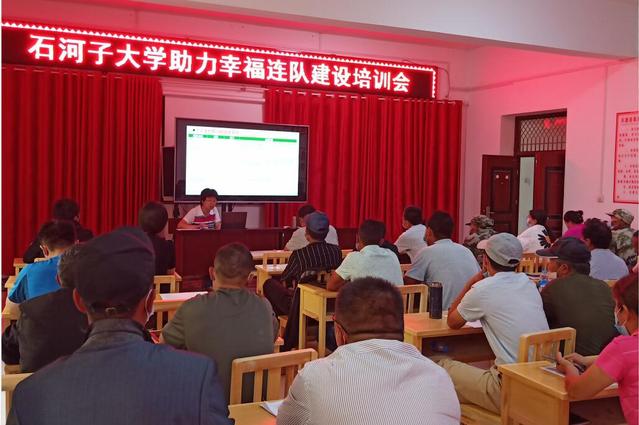 科技服务团队负责人、农学院林学系教师韩卫民从连队规划、连队建设、生态环境、经济发展、公共服务、乡风文明等方面详细讲述了实施乡村振兴战略的意义、方法和措施,并结合自己主持的科研项目,为连队工作人员和当地群众详细讲解了如何科学确定连队居住生活区和养殖区,以及进行生活污水治理、连容连貌改造和连队人居环境整治的具体方法。