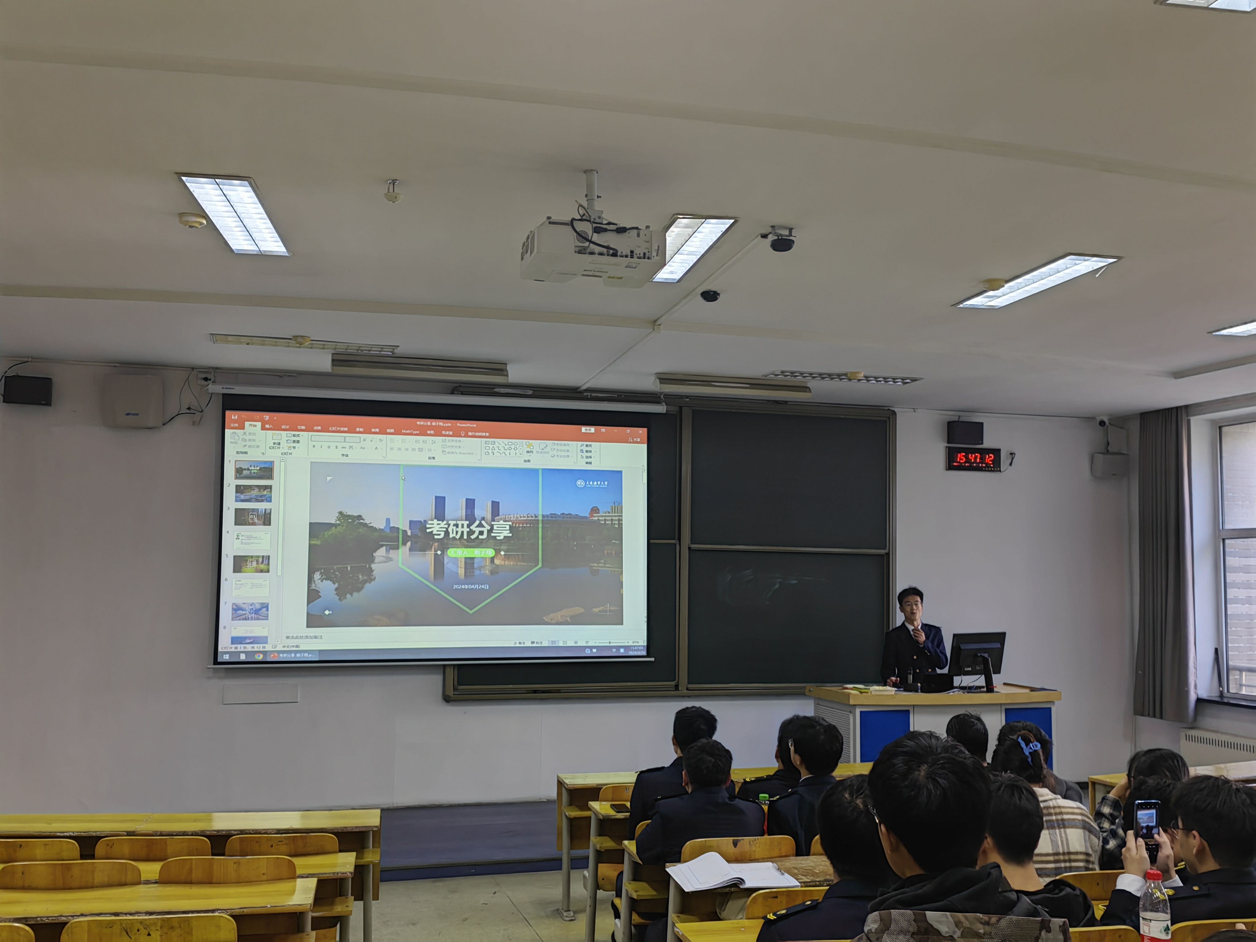 陈煜、郑子硕、徐培淞三名同学做报考本校经验分享。陈煜着重强调了考研的意义和备考学习方法,提醒同学们明确目标,坚定信念,合理安排复习计划,不急于求成;郑子硕分享了每日时间安排和复习资料的选择,建议同学们摸索出适合自己的学习方法并长期坚持,以提高备考的学习效率;徐培淞结合自己优异的复试成绩,分别就专业报考方向和面试经验进行分享,强调复习期间要保持定力,重视情绪管理,学会自我调节。