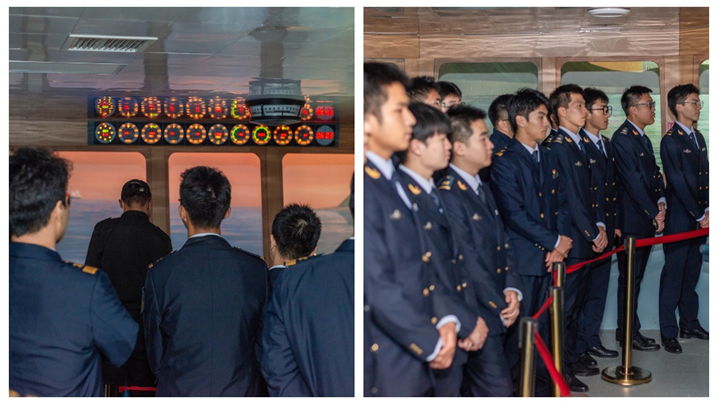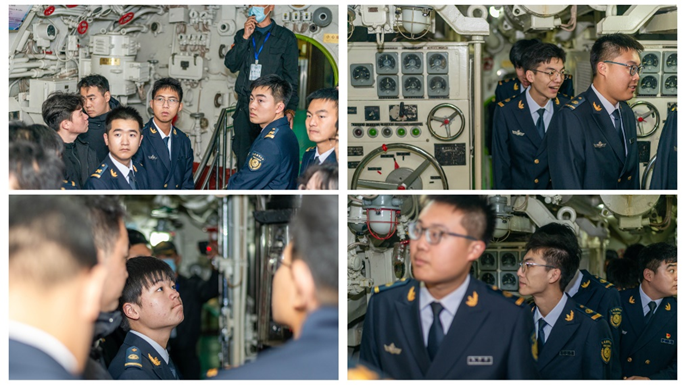 置身于狭小的潜艇空间,同学们身临其境亲身感受到海军官兵在恶劣环境下仍坚守战位的英勇与坚韧。听到一段段强军故事、看到一件件珍贵实物、体验一个个模拟场景,全体党员均深受触动,随后结合所见所思所悟开展交流研讨,更加深刻理解了新时代国防建设使命的艰巨与意义的重大。