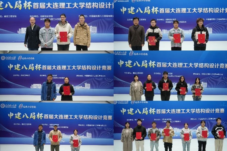 2025年4月13日,由大连理工大学建设工程学院主办、中国建筑第八工程局有限公司独家冠名的“中建八局杯”首届大连理工大学结构设计竞赛在大连理工大学工训中心成功举办。本次大赛以"创新赋能·智造未来"为主题,吸引全校6个院系30支队伍90人次参赛,历时4月,经模型制作、专家评审及加载测试,最终产生A组(主赛道)、B组(专项赛)、C组(新生赛)三个组别共8类奖项,5支团队获一等奖。
