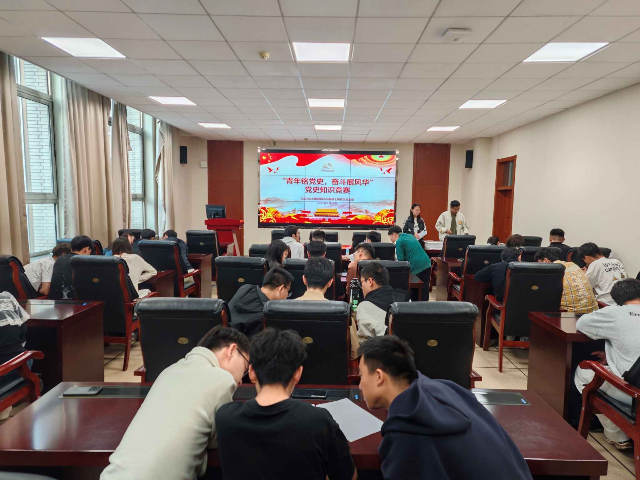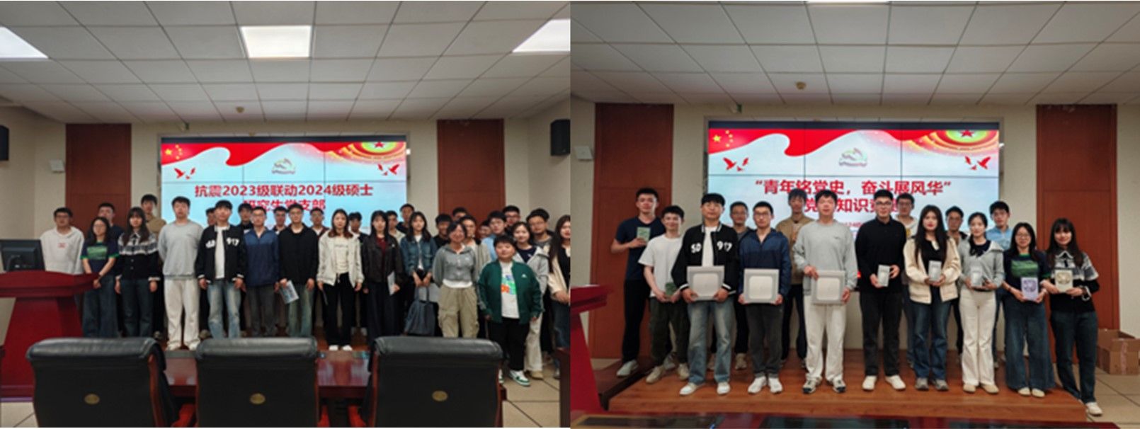 为深入学习贯彻习近平新时代中国特色社会主义思想,加强研究生党员的思想政治教育,抗震 2023 级、 2024 级硕士研究生党支部于5月20日联合举办了“青年铭党史,奋斗展风华” 党史知识竞赛。