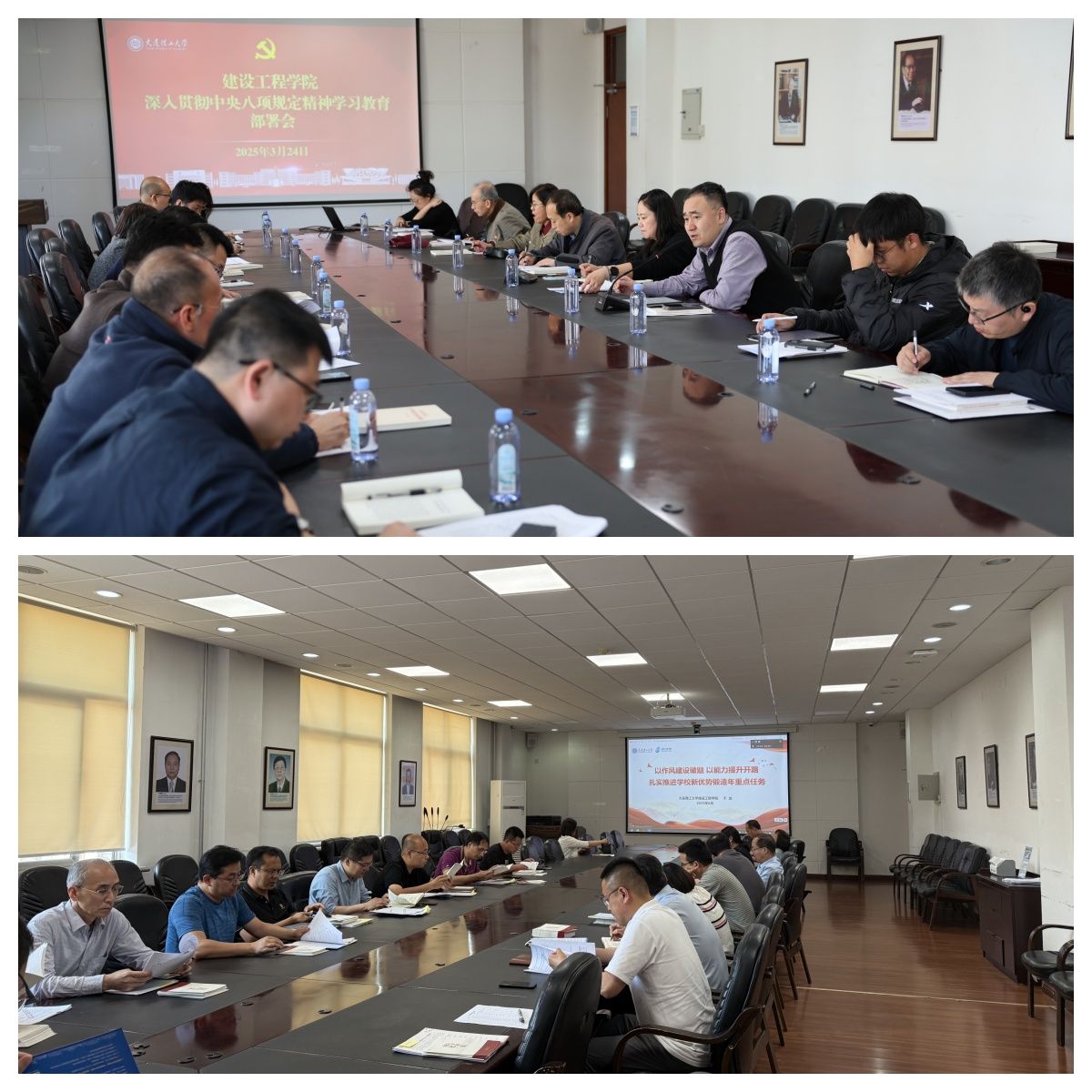 自深入贯彻中央八项规定精神学习教育开展以来,建设工程学院党委以高度的政治责任感和使命感,统筹部署、多维发力、闭环管理,推动作风建设融入日常、抓在经常,确保学有质量、查有力度、改有成效,以严实举措为学院事业发展提供坚强作风保障。