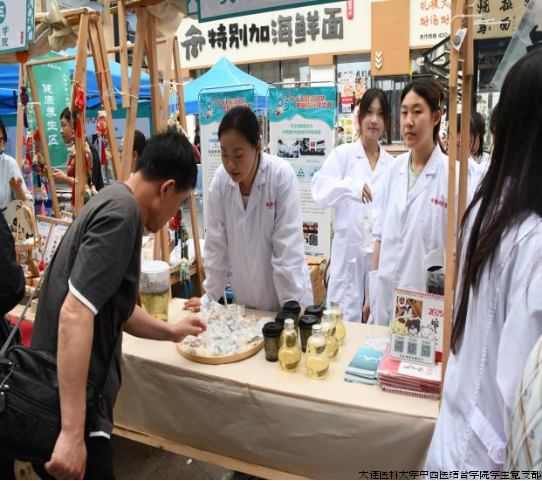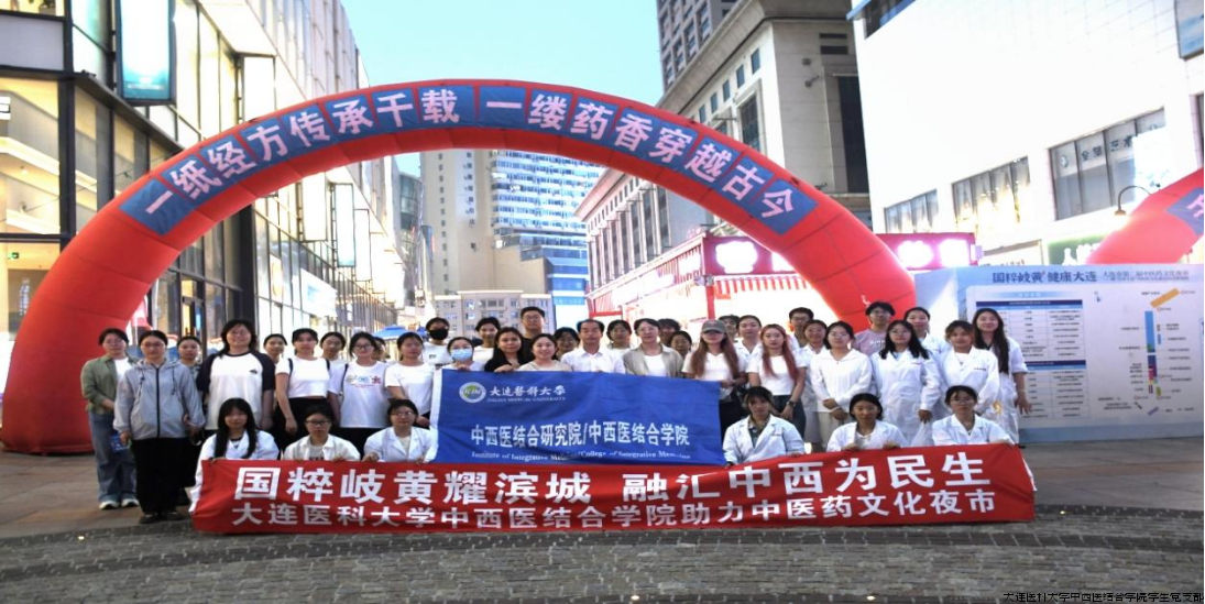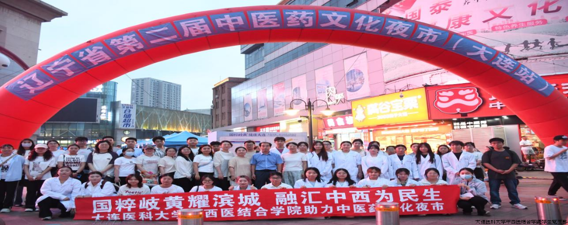 为弘扬中医药文化,提升市民健康素养,6月28日、29日16:00-19:30,中西医结合学院师生积极响应大连市卫健委号召,由学院党总支书记尹伟带队,中西医结合教研室专业教师王慧一、本科生辅导员邢丹、尼格尔,研究生辅导员彭雪靖,及本研学生代表共60人组成的团队,倾力参与在天津街举办的“2025年大连市第二届中医药文化夜市暨‘百市千县’中医药文化惠民活动”。