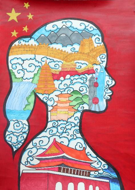学生组绘画一等奖作品《我和祖国共成长》/摄影 陶乐(2017级影视动画班)