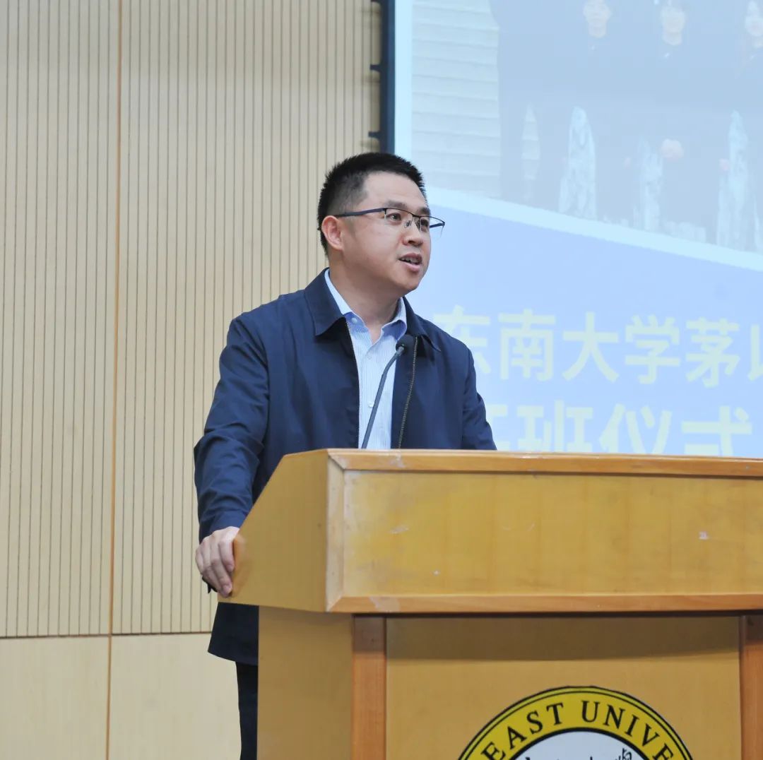 交通学院院长陈峻老师首先向新加入茅以升班的40位新同学表示了热烈欢迎,介绍了学院为茅以升班提供的学科教学平台、实践创新平台、国际交流平台,现已成为引领性的人才培养示范基地。学子们应当树立报国志,建功新时代,成为引领学科行业发展的领军人才。他还特别提出,在学院 “前路先贤”雕塑落成仪式上,茅玉麟女士对茅以升班的学子成长也表示充分关心,希望大家传承前辈的精神。