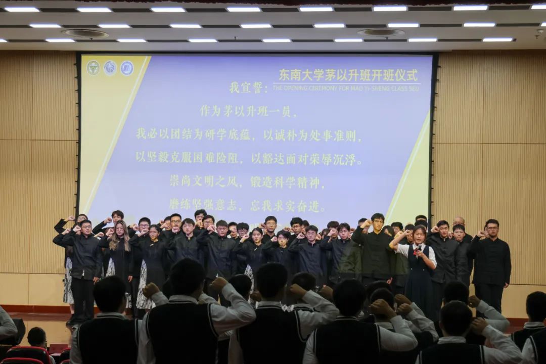 茅以升班是一个优秀的集体,在东南大学,茅以升班已经成为一个班级品牌。茅班精神薪火相传,为了祝贺学弟学妹们成为新一届的茅班人,也为了给他们做好榜样,每届茅班开班仪式上,茅班的同学们都会为新一届茅班学子寄语,将茅班精神传承。2021级茅以升班代表李沐轩同学和张梦娜同学向到场师生展示了东南大学茅以升班在学习、科研、志愿活动、学生工作等方面的风采与荣誉,相信茅班学子们会在茅老精神的感召下,继续团结奋进,给茅以升班赢得新的辉煌与荣誉。