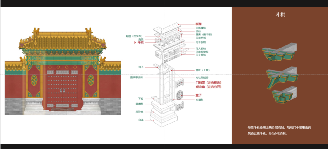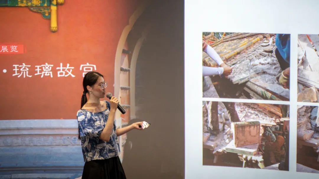 随后故宫古建部祝萌馆员和段鸿莺研究馆员分别介绍了琉璃的发展演变和琉璃的材料学研究。东南大学建筑学院彭隐同学以“建一座琉璃门”为题,详细讲述了琉璃门的结构、构造和构件,以及琉璃门传统营建工序的推测复原,生动讲述其中蕴含的营造特点与工匠智慧。