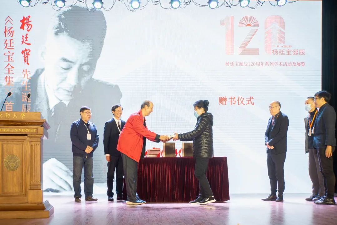 首发式现场,在建筑学院院长张彤、党委书记冷嘉伟的见证下,黎志涛教授代表东南大学建筑学院和中国建筑工业出版社向杨廷宝先生、梁思成先生、刘敦桢先生、童寯先生后人赠送《杨廷宝全集》。
