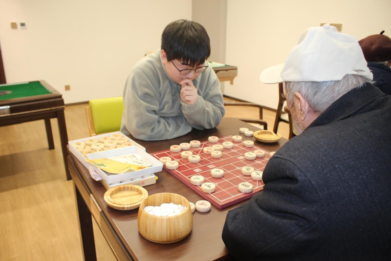 随后,党员同志们走入休息室、活动室,与爷爷奶奶们围坐一堂,聆听他们讲述人生故事。东南大学能源与环境学院硕士生第7党支部的常瑞同志和爷爷对弈象棋,笑声和落子声此起彼伏,深厚的情谊在棋盘上悄然生长。