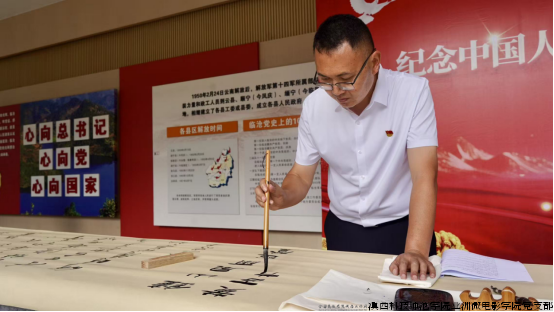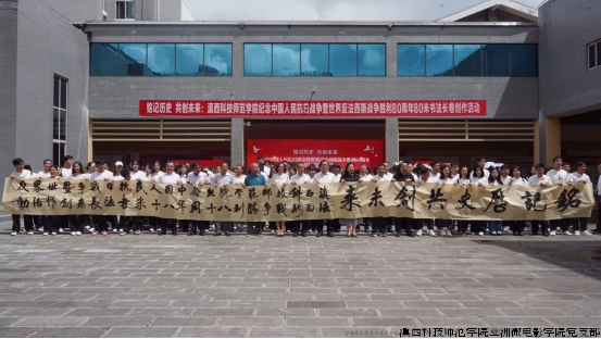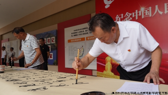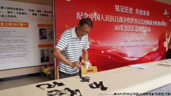 2025年8月29日下午,亚洲微电影学院与人文学院在学校边境地区红色文化传承教育实践基地开展“铭记历史 共创未来”联合主题党日活动,以80米书法长卷创作的形式,纪念中国人民抗日战争暨世界反法西斯战争胜利80周年,校党委书记阮凤斌出席活动并致辞,校党委副书记、校长刘艳红出席活动并宣布活动启幕。