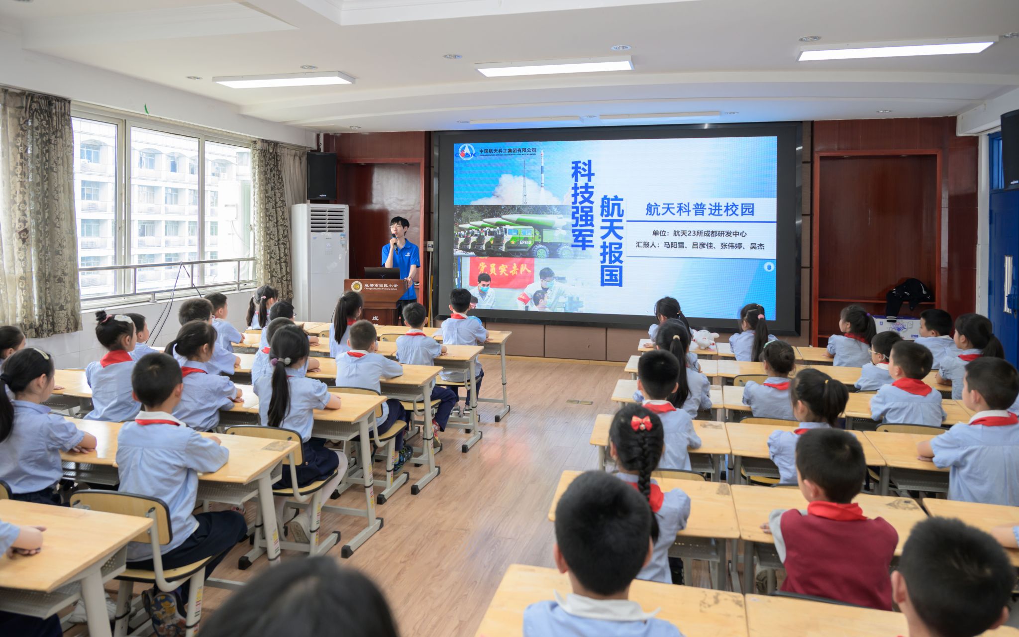 耿宝莹围绕“三个特殊”为活动致辞。一是希望在“中国航天日”这个特殊的日子,在同学们的心里种下追求科学、叩问苍穹和对中国科学家崇敬景仰的种子;二是来到了有着百年历史的成都回小这样特殊的地方,希望通过本次宣讲团走进大中小学首场活动,建立电子科大、中国航天科工二院二十三所和成都回小三个单位未来更多、更全面的联系与合作,同时更好地履行高校和科研机构科学普及的使命;三是大学生们来到了这个特殊的、学以致用的课堂,希望大家利用好走出校园的机会,在服务社会的过程中将青春升华。